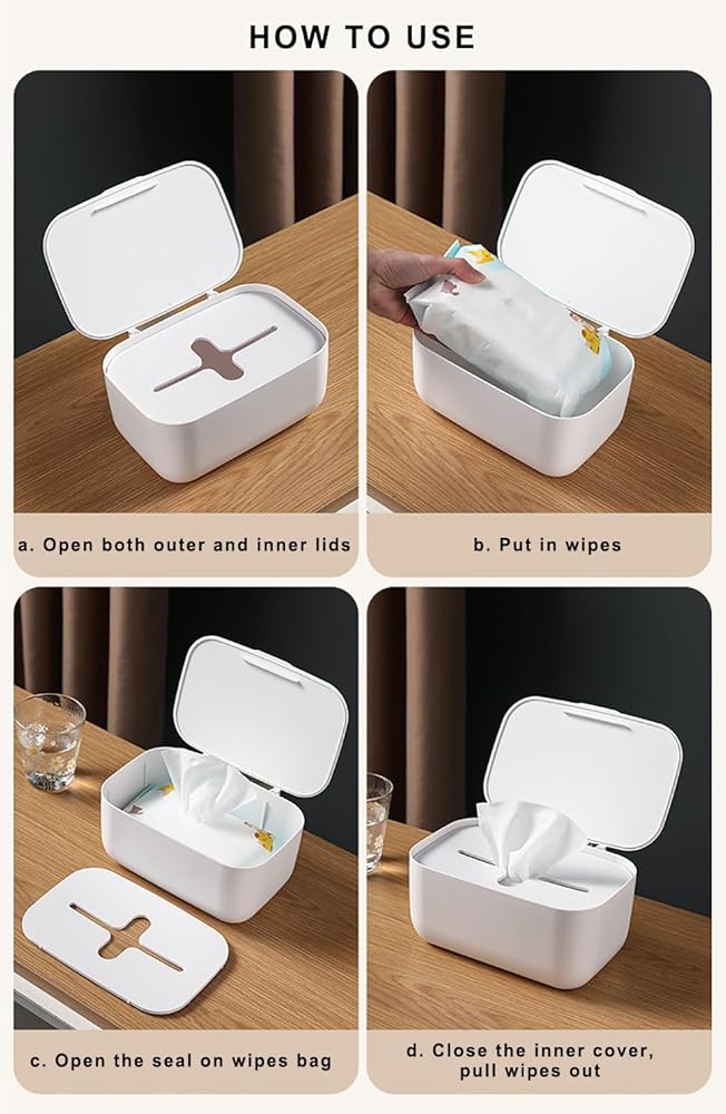 Various Applications: With a greatly large capacity and good seal performance, the butt wipes dispenser also can be available for: Pet wipes holder, Wet wipes box, Hand wipes container, Toilet wipes dispneser, Facial wipes holder, Diaper wipes storage, Personal wipes container, Dry cotton wipes box, Butt wipes holder, Doggie wipes dispenser, Makeup Facial wipes container, Reusable cloth wipes storage, Dryer sheets container, etc.