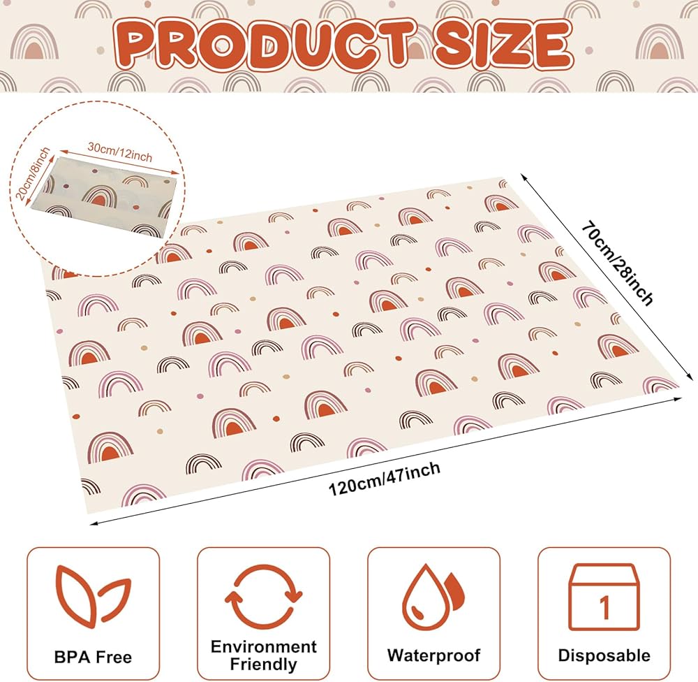 40 قطعة، 28 بوصة × 47 بوصة، سجادة أرضية للاستعمال مرة واحدة تحت الكرسي العالي، سجادة أرضية للأطفال مقاومة للماء وقابلة للتحلل الحيوي، سجادة أنشطة متعددة الأغراض لمستلزمات فطام الطفل LED (قوس قزح بوهو)