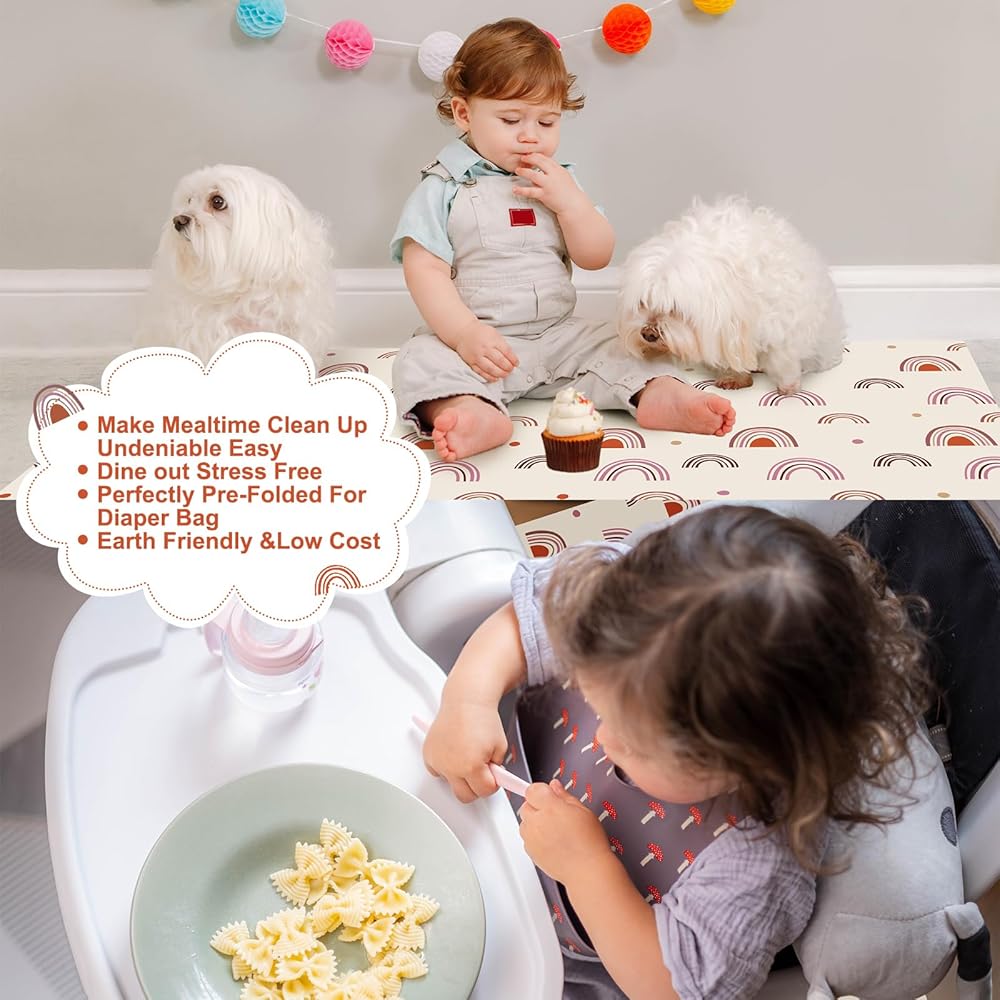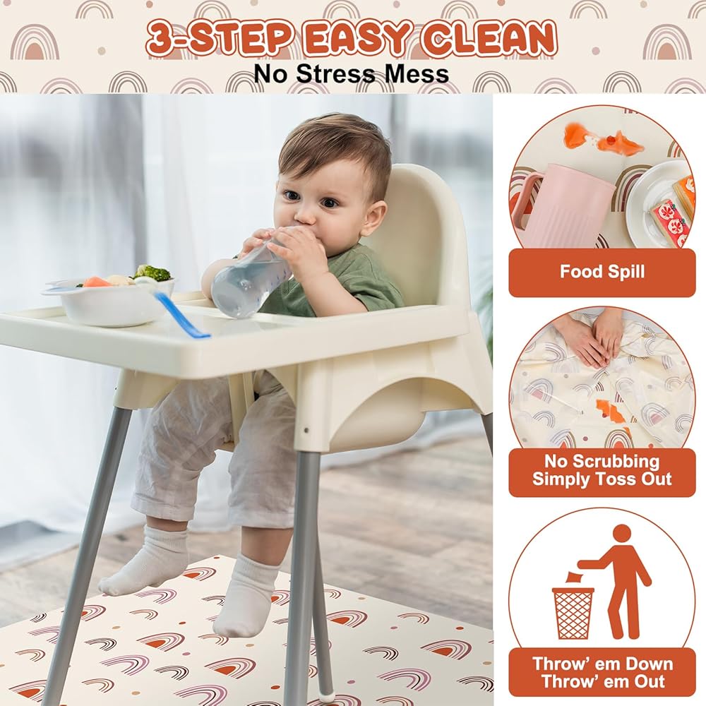 Whether you're visiting relatives, attending a party, or heading to the park, this disposable floor mat for under high chair can easily be taken along to ensure a clean space for your child wherever you go.