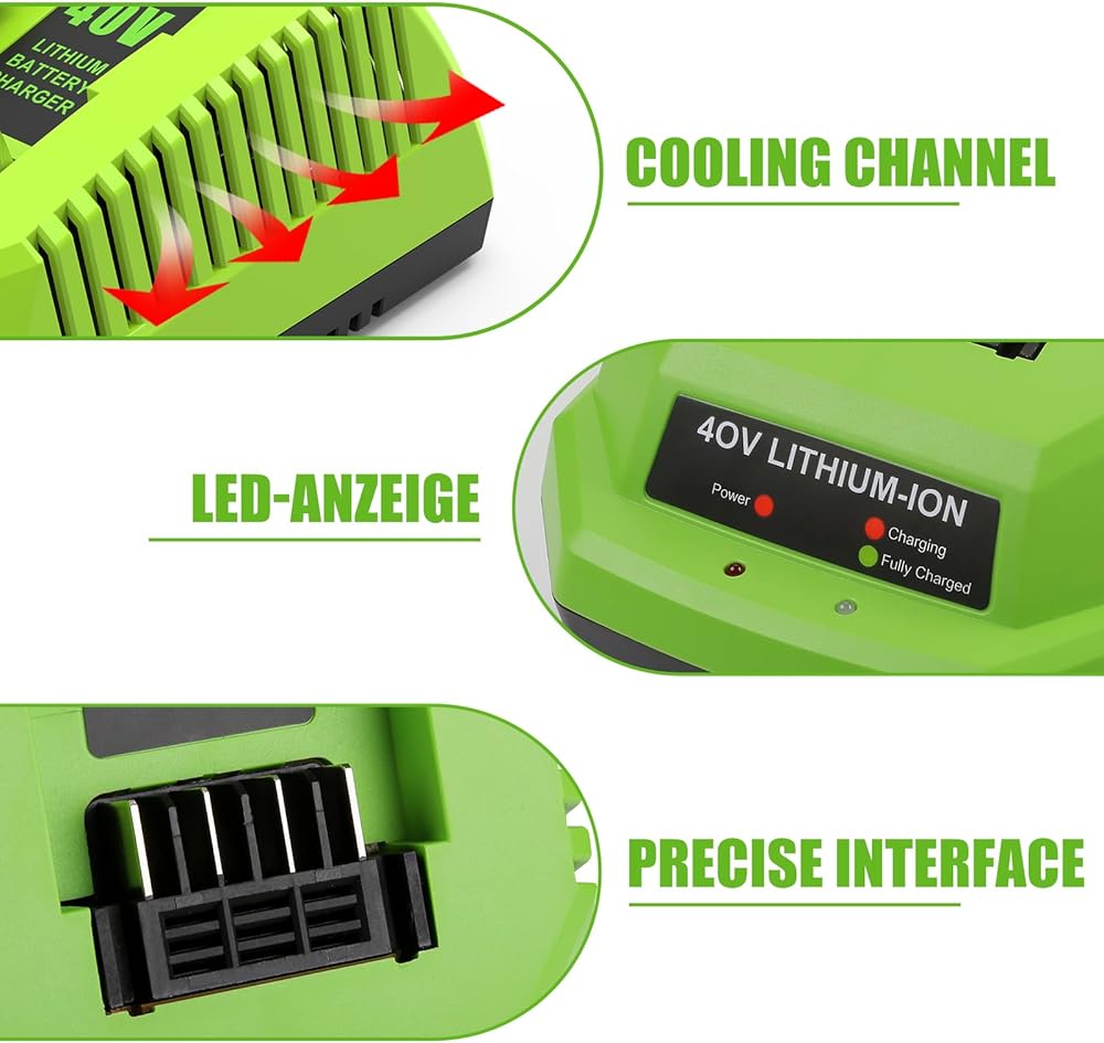 - 🔋 استبدال شاحن بطارية ليثيوم أيون G-MAX 40 فولت عالي الأداء لتشغيل منخفض التكلفة، وتجديد الطاقة للبطارية في الوقت المناسب