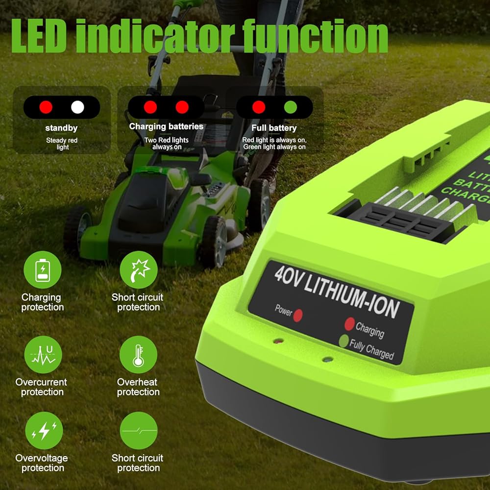 شاحن بطارية بديل 40 فولت من Greenworks 40 فولت متوافق مع بطارية G-MAX 40 فولت 29462 و29472 لشاحن بطارية ليثيوم أيون 40 فولت من Greenworks