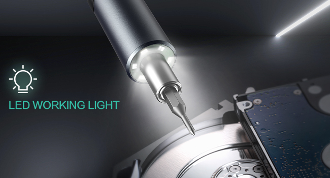 🛠️توفير الطاقة: بالإضافة إلى ذلك، يحتوي مفك البراغي أيضًا على وضع توفير الطاقة (سينطفئ الضوء تلقائيًا بعد 3 دقائق)، مما يوفر الطاقة ويحمي البطارية.