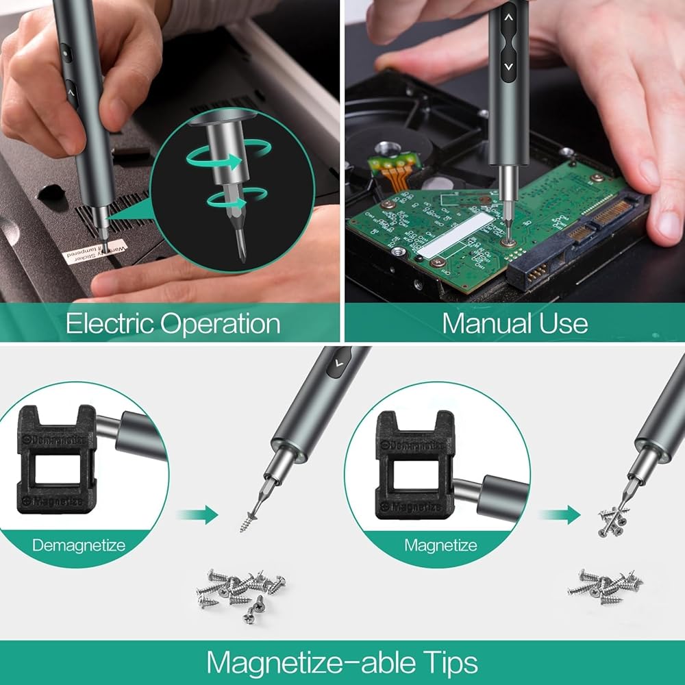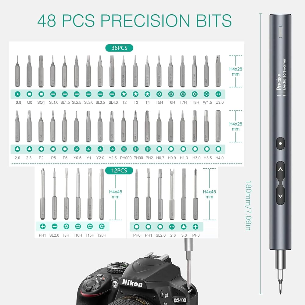 🛠️ مجموعة مفك براغي 51 في 1: تتضمن مجموعة مفك البراغي الدقيقة 48 لقمة مفك براغي S2 بأحجام سداسية ومشقوقة ومثلثة وأحجام أخرى. يأتي مع ممغنط وكابل شحن USB وحقيبة محمولة لمساعدتك على العمل بكفاءة وذكاء.