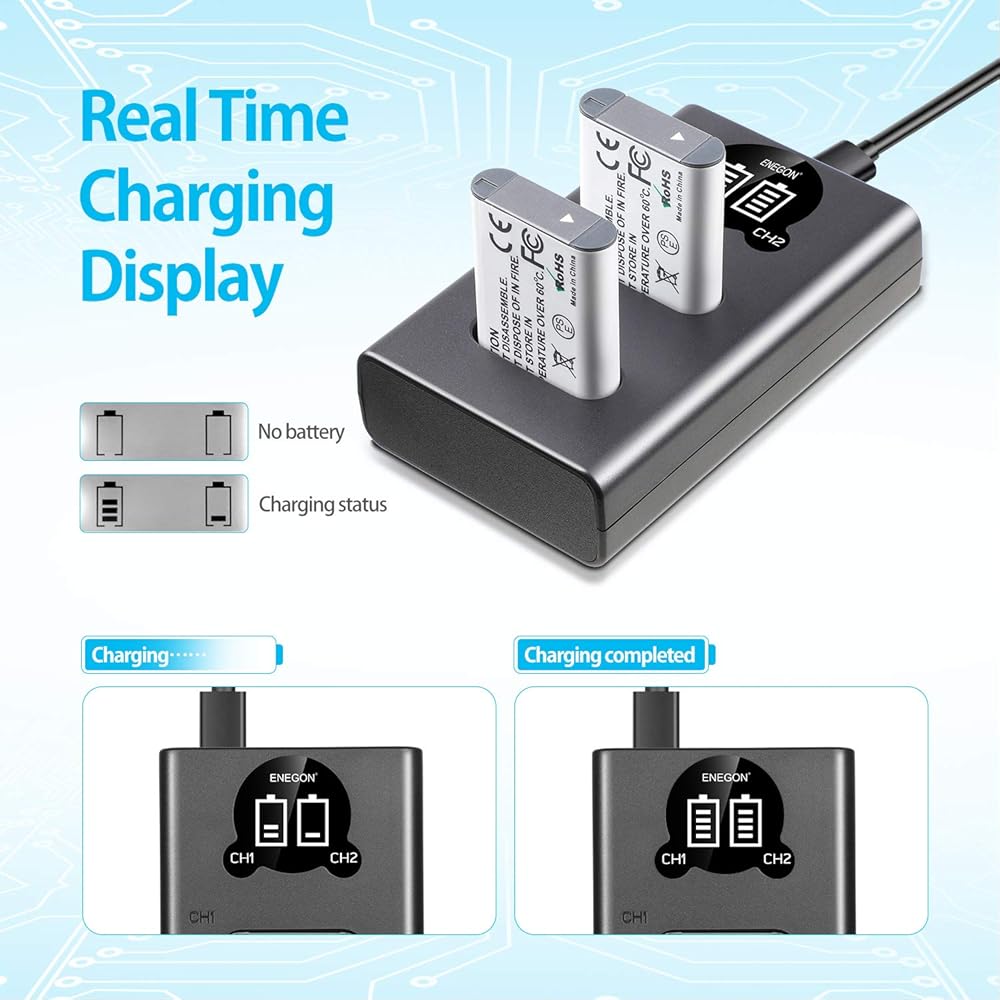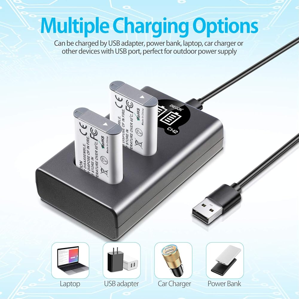 🎁 تسوق بثقة، واستمتع بتجربة الخدمة المخصصة: تتضمن العبوة بطاريتين، وشاحن USB مزدوج مزود بشاشة LCD، وكابل Micro-USB. استفد من دعم العملاء لدينا على مدار 24 ساعة طوال أيام الأسبوع، وسياسة إرجاع خالية من القلق لمدة 30 يومًا، وخدمة فنية مدى الحياة.