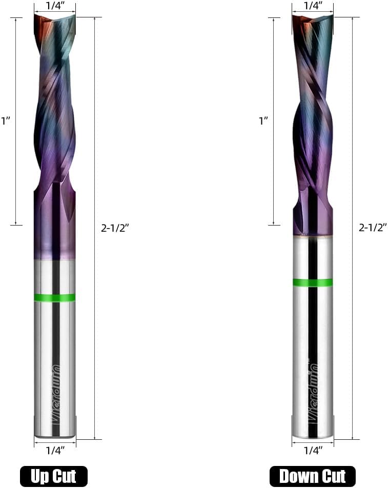 UP&Down Cut Sprial Router Bit . 1'' Cutting length; 1/4'' Cutting Diameter ;1/4'' Shank Size ; 2-1/2'' Overall Length. Can be used on routers with 1/4'' collect