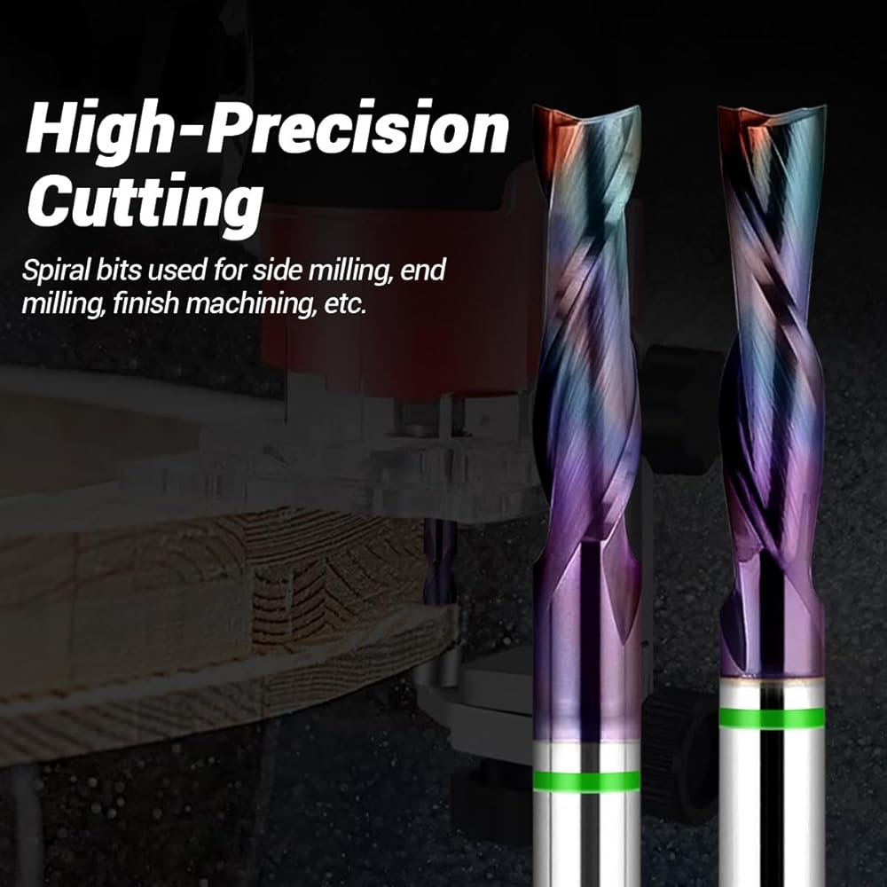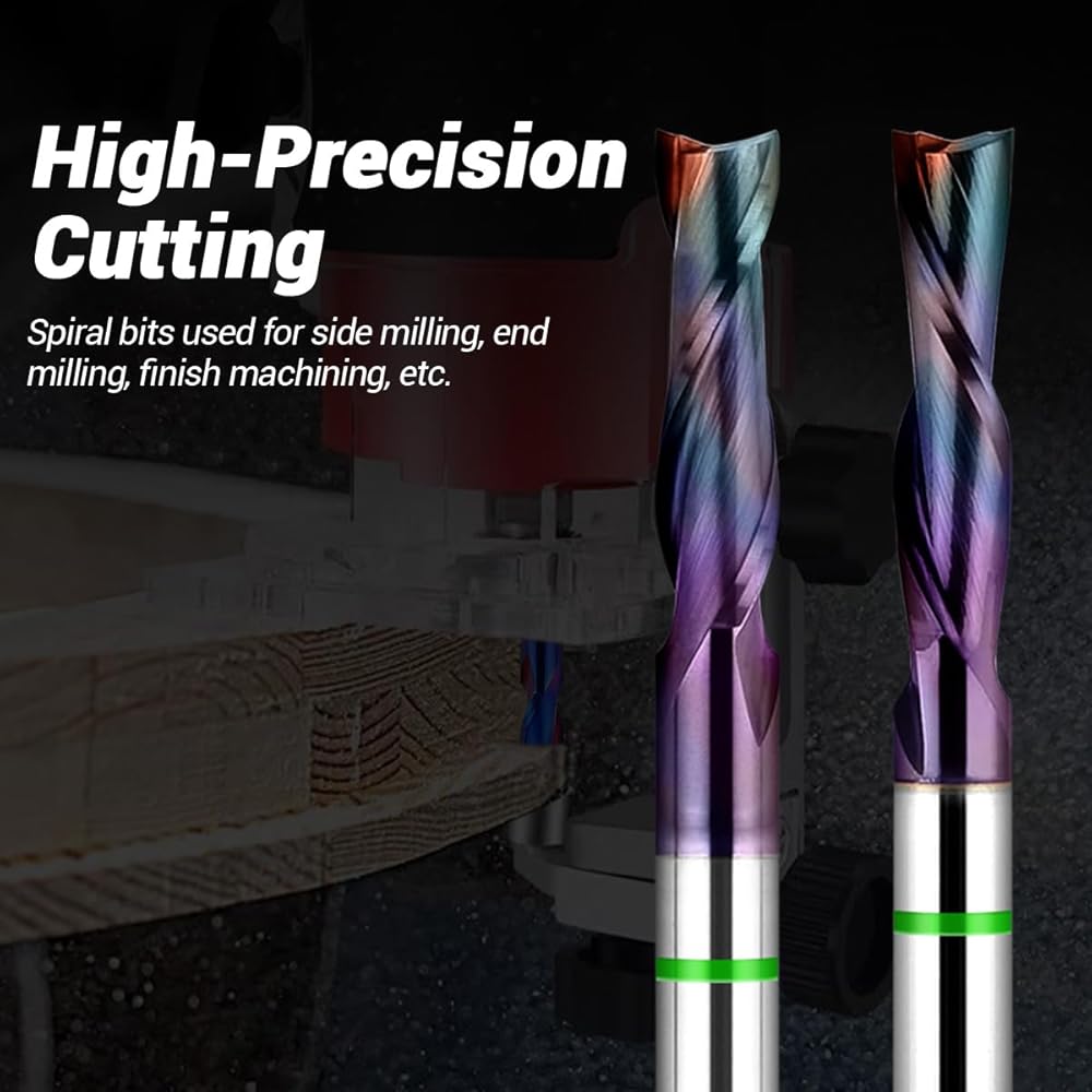 The HARDWIN Compression Spiral Double-Flute End Mill is a professional-grade CNC precision cutting tool designed specifically for wood and composite material processing. With a 1/4 inch shank and cutting diameter, it offers broad applicability for various wood cutting needs. The double-flute design ensures smooth cutting, significantly reducing tool vibration and thereby increasing work efficiency. Its unique compression spiral shape effectively pushes wood chips down, minimizing burrs and ensuring a smooth cutting surface. Each pack contains two end mills to meet different project requirements, making it the ideal choice for woodworking enthusiasts and professionals seeking high-quality cuts. Choose HARDWIN to elevate your woodworking projects and tackle various challenges with ease!