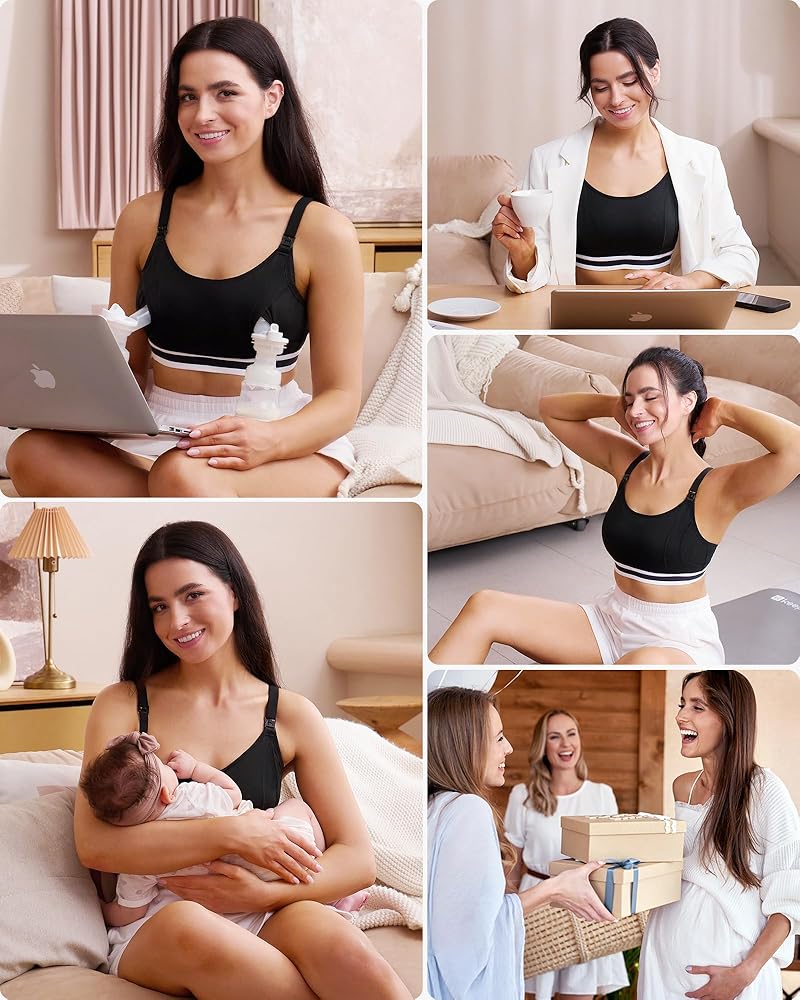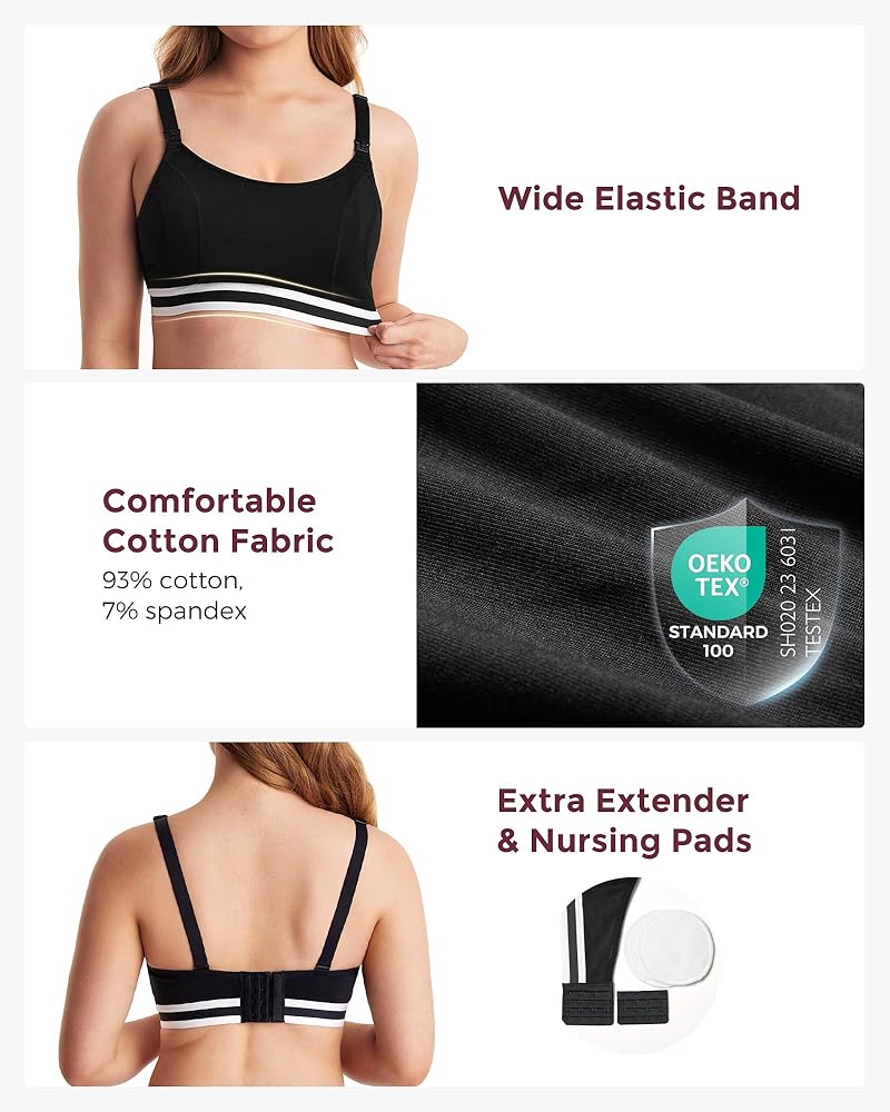 تجربة راحة لا مثيل لها: تتميز حمالة الصدر Momcozy Pumping بشريط مطاطي واسع ونسيج مطاطي يعانق جسمنا بشكل مريح، مما يضمن الثبات والملاءمة المثالية للارتداء طوال اليوم.