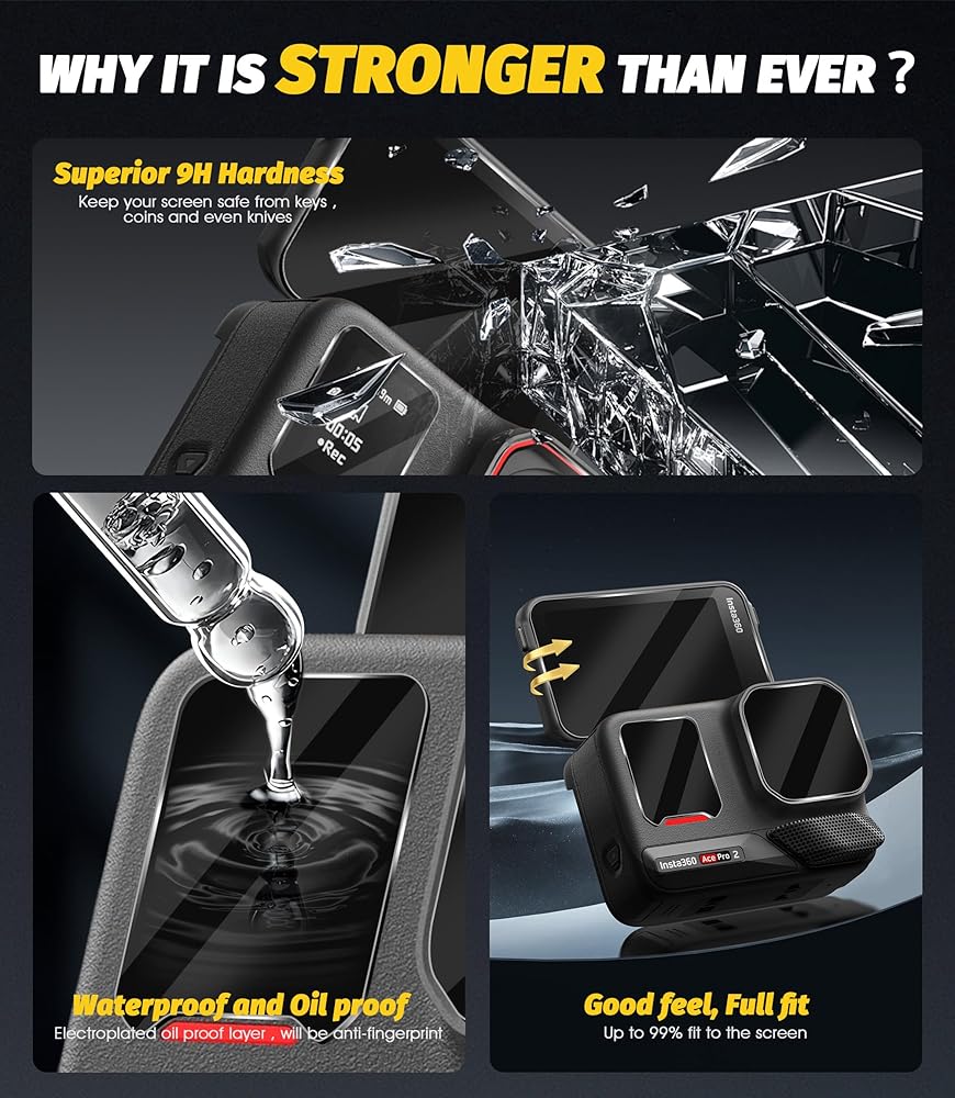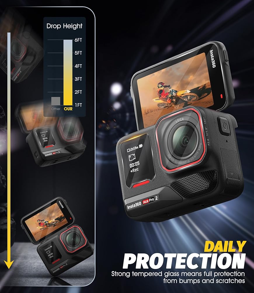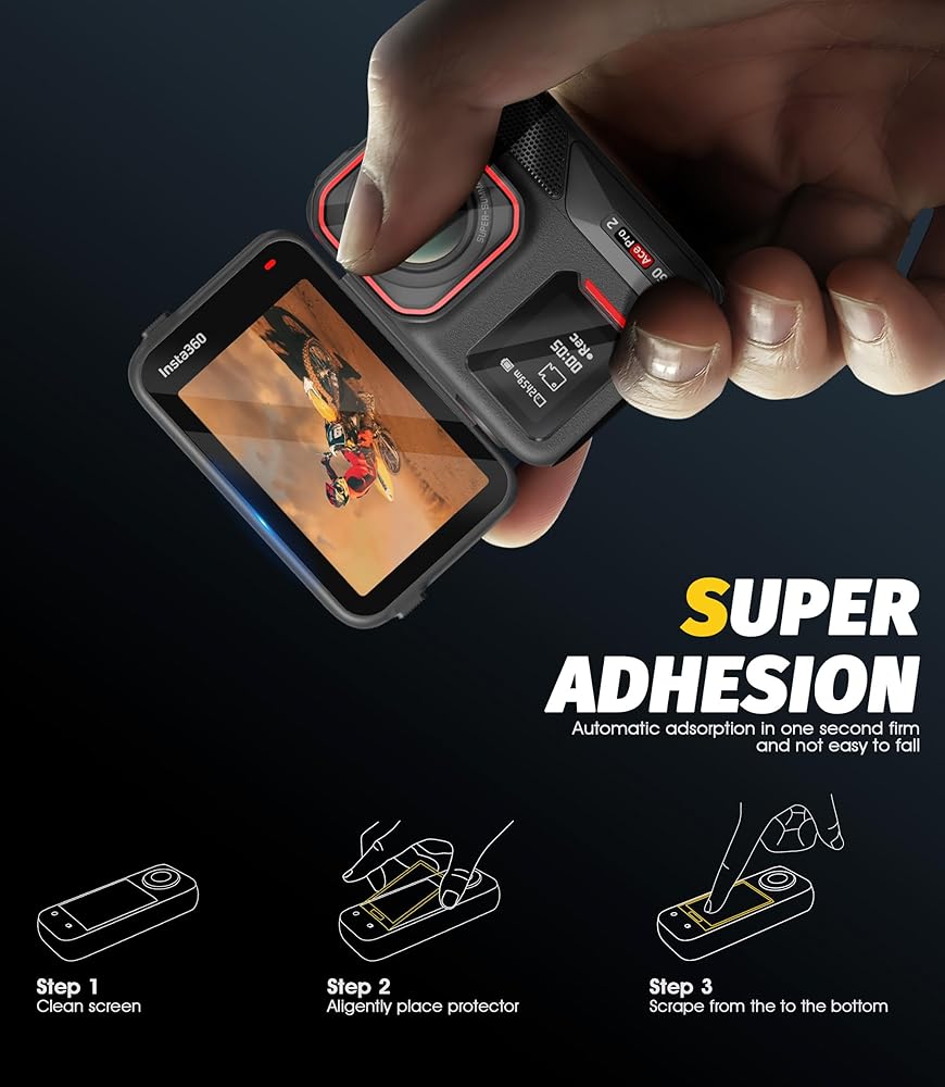 التوافق: واقي شاشة مصمم خصيصًا لـ Insta360 Ace Pro 2 (لا يناسب Insta360 Ace/Ace Pro) تتضمن العبوة 3 واقيات شاشة تعمل باللمس + 3 واقيات عدسات + 3 واقيات ناعمة من PET للشاشة الأمامية، تحمي جهاز الكاميرا الخاص بك بالكامل