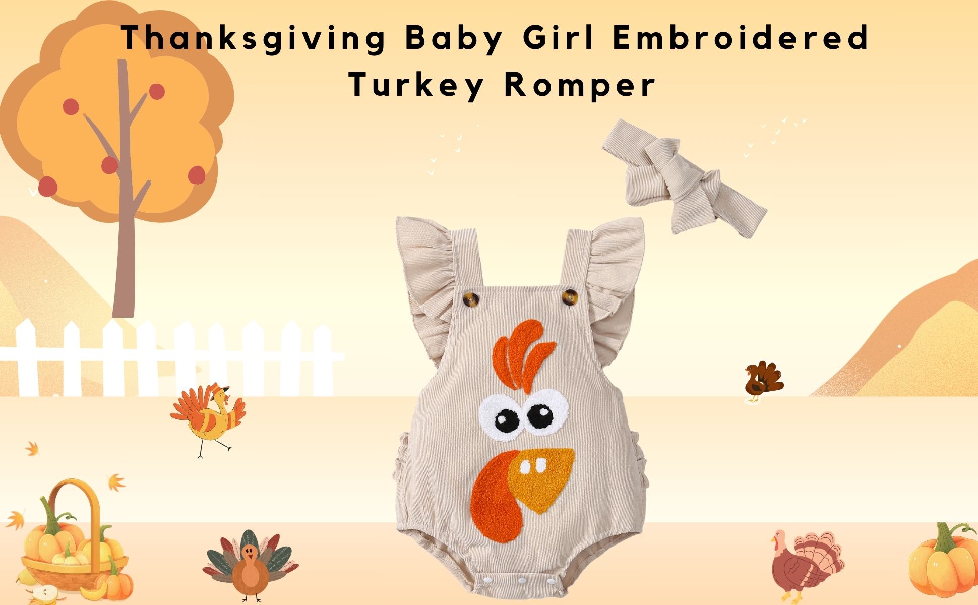 تشمل العبوة: 1 × رومبر عيد الشكر + 1 × عصابة رأس على شكل فيونكة
