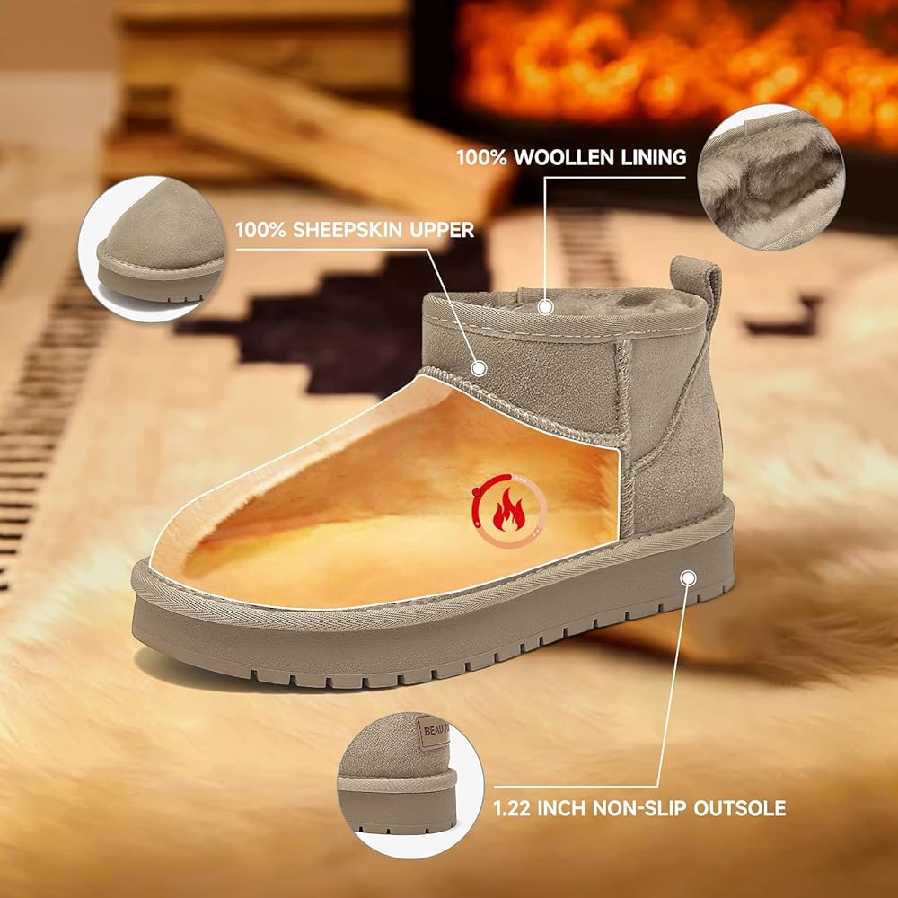 • بطانة دافئة من الصوف الأصلي: تمتع بأقصى درجات الراحة مع أحذية الثلج لدينا، المصنوعة من بطانة من الصوف الأصلي. يوفر هذا الصوف الأصلي دفء ونعومة استثنائيين، مما يجعل قدميك تبقى مريحة ومدللة في الشتاء. ارفع أناقتك بينما تستمتع بالجودة الممتازة للحقيقي. الصوف، اختيار جيد لأولئك الذين يقدرون الموضة والعملية