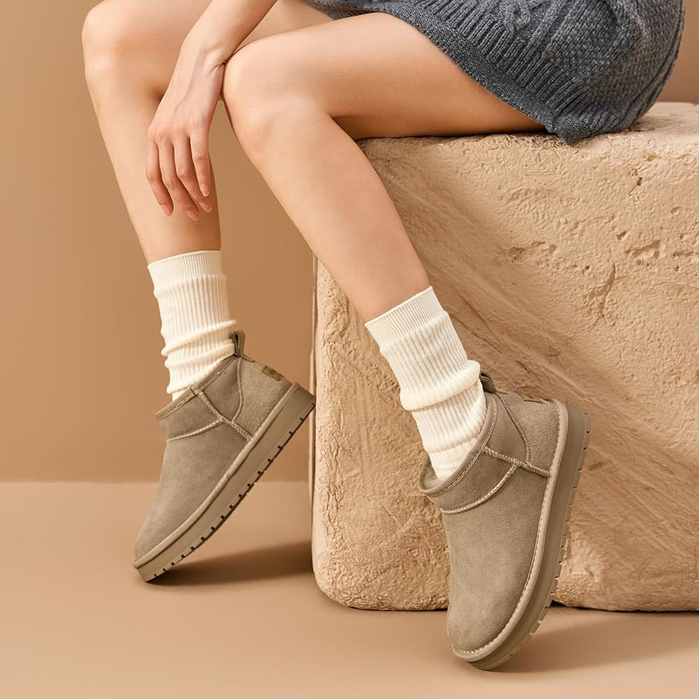 • خامات جلد الغنم: جرّب الفخامة والمتانة التي تتميز بها أحذية الكاحل المصنوعة من جلد الغنم الأصلي بنسبة 100%. لا توفر فقط مظهرًا أنيقًا بتصميمها الصوفي، ولكنها توفر أيضًا تهوية جيدة، مما يجعلها مثالية لموسم الثلج. مثالية لأولئك الذين يقدرون مزيج الموضة والعملية في أحذيتهم