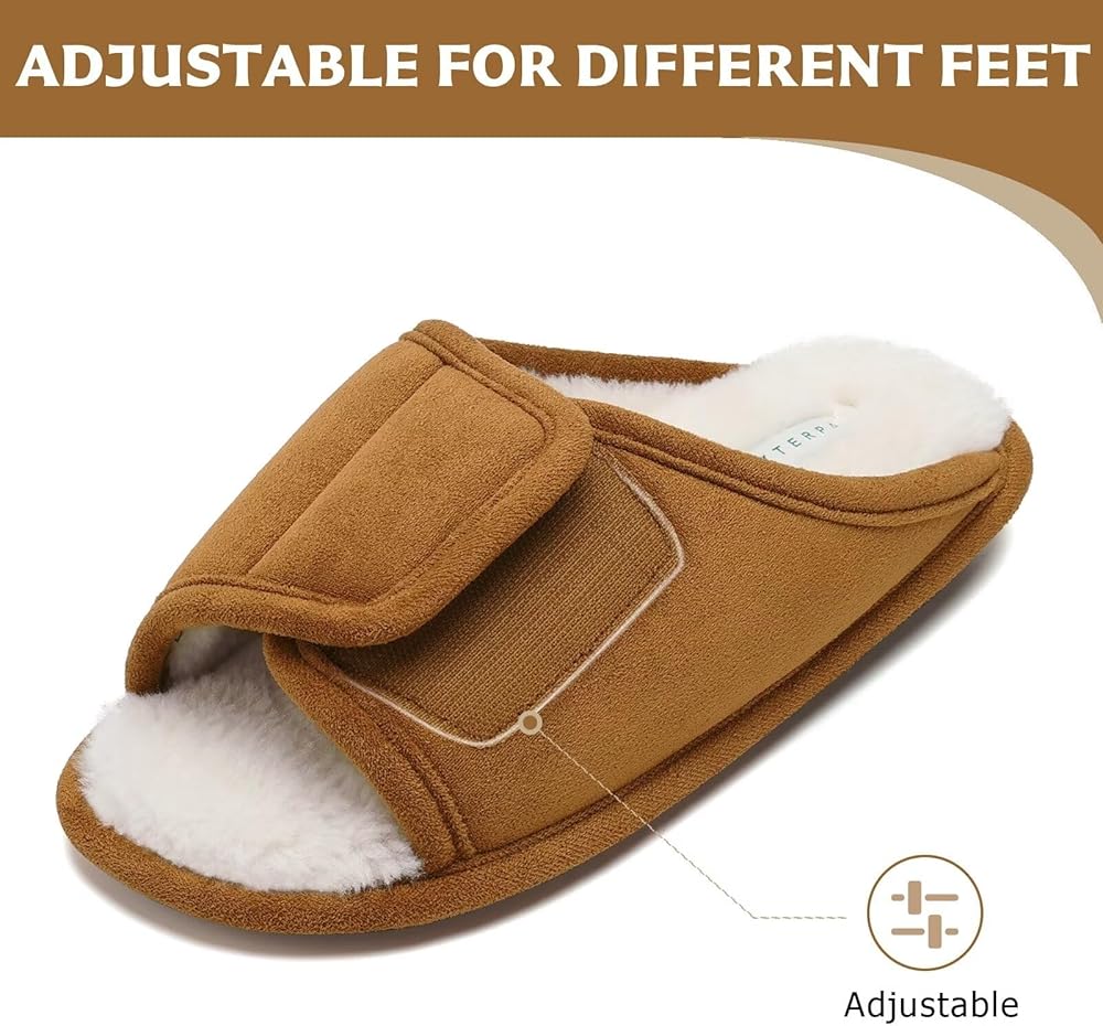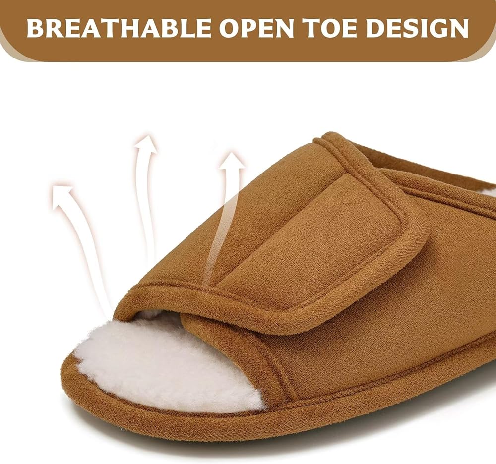 مقاس قابل للتعديل ومريح: تتميز هذه الشباشب النسائية ذات المقدمة المفتوحة بتصميم قابل للتعديل يناسب جميع أشكال القدم، مما يضمن ملاءمة مريحة ومريحة للاسترخاء في المنزل