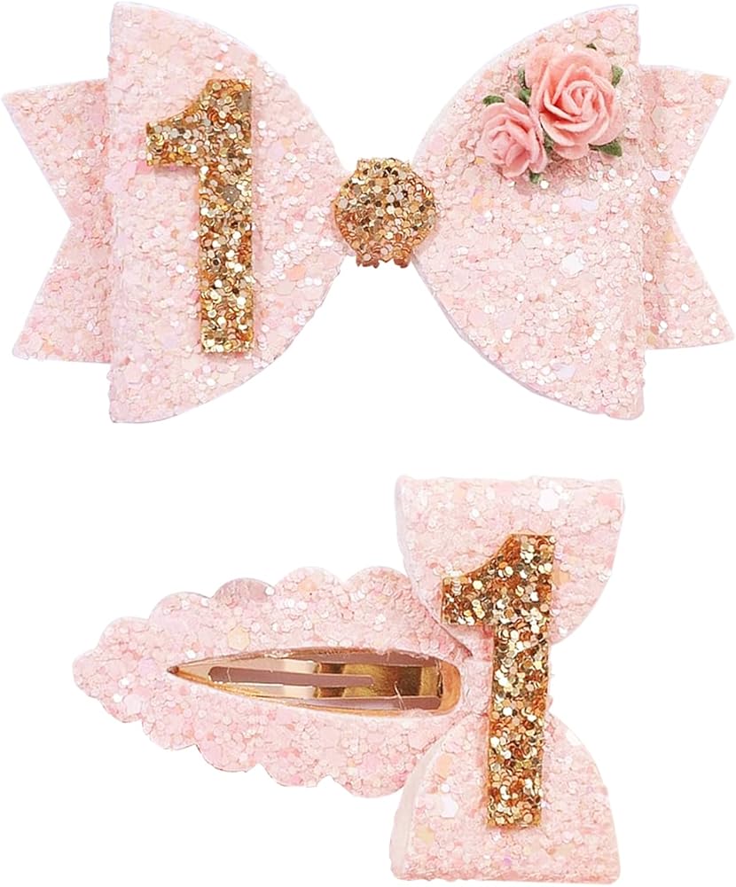 Hair Bows Package Includes: 2pcs 1st birthday girl headdress. These hair bows will match your toddler girls outfit easily!These girls hair bows, clips are absolutely adorable and well great for girls toddler accessories hair decoration