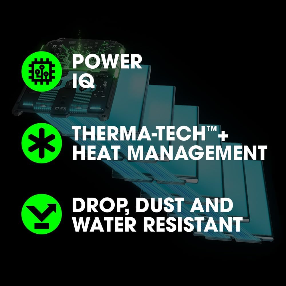 THE FLEX STACKED LITHIUM ADVANTAGE - 200% more power with 24V Stacked Lithium, 300% longer battery life with THERMA-TECH+ heat management, 100% faster charging, 100% cross-compatible with all FLEX 24V tools and chargers