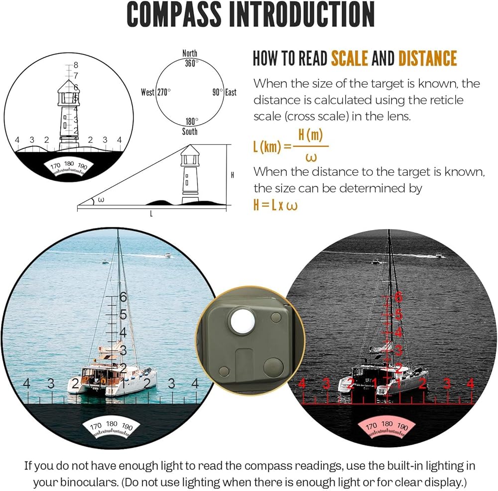 【مناظير مع بوصلة】مع البوصلة والمقياس المدمجين، يمكنك بسهولة حساب المسافة المستهدفة أو الارتفاع المستهدف، بالإضافة إلى ذلك، إذا لم يكن لديك ما يكفي من الضوء لقراءة قراءات البوصلة، يمكنك أيضًا استخدام الإضاءة المدمجة في المنظار (بطارية LR936/AG مجانية).