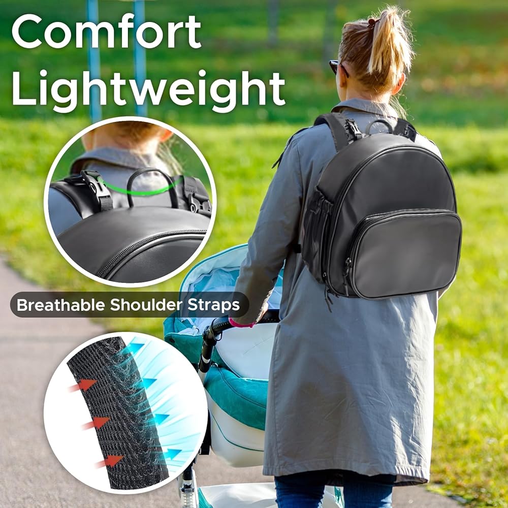 سهولة الوصول: تم تصميم حقيبة الحفاضات هذه لسهولة الوصول إليها. يوفر التصميم الأمامي المبتكر ذو الفتح الكامل رؤية واضحة ووصولاً سريعًا إلى ضرورياتك، بينما يحافظ الجيب الخلفي الآمن المضاد للسرقة على مقتنياتك الثمينة آمنة وفي مكانها. سواء كنت في الخارج أو تقوم بمهام يومية، فإن هذه الحقيبة تضمن أن كل ما تحتاجه في متناول يدك بشكل مريح.