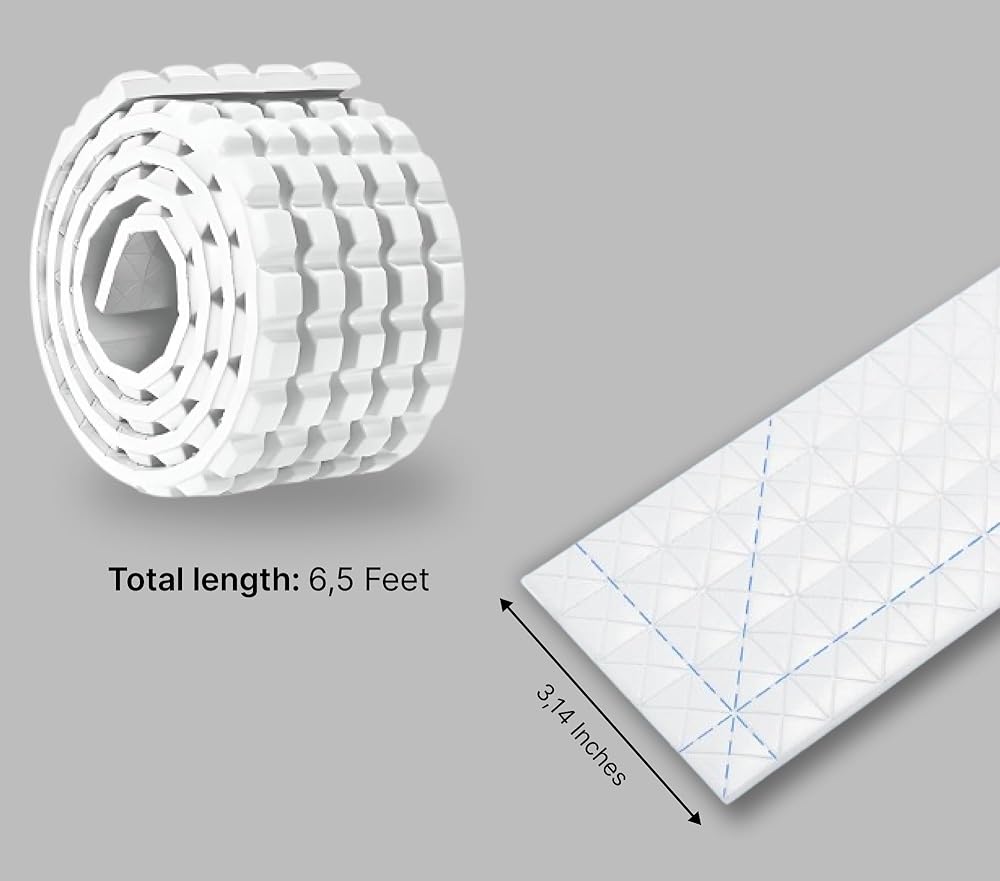 The proofing crib bumper, sized at 6.5ft x 3.14in х 0.39in, is designed as chocolate shape flexibility, its length and width can be cut as needed to fit any place, providing customizable child proof. White foam adhesive strips peel and stick molding trim corner protector for furniture offers easy installation and durable protection from acute corners and also make child proof sharp corners. Our white foam wall corner guard is a perfect gift and a necessary thing for everyday use for young parents and also it can safe child from sharp corners of wall, furniture, crib, stairs or sink. This molding trim peel-and-stick wall corner protector is a flexible foam adhesive strip ideal for baby proofing. Use it babyproofing products as a rubber baseboard, or crib bumper to prevent injuries. These corner guards are essential safety products that protect your child from sharp edges on tables and other furniture and also it made from durable rubber, they ensure long-lasting protection.
