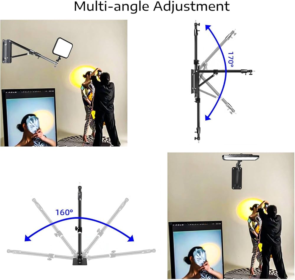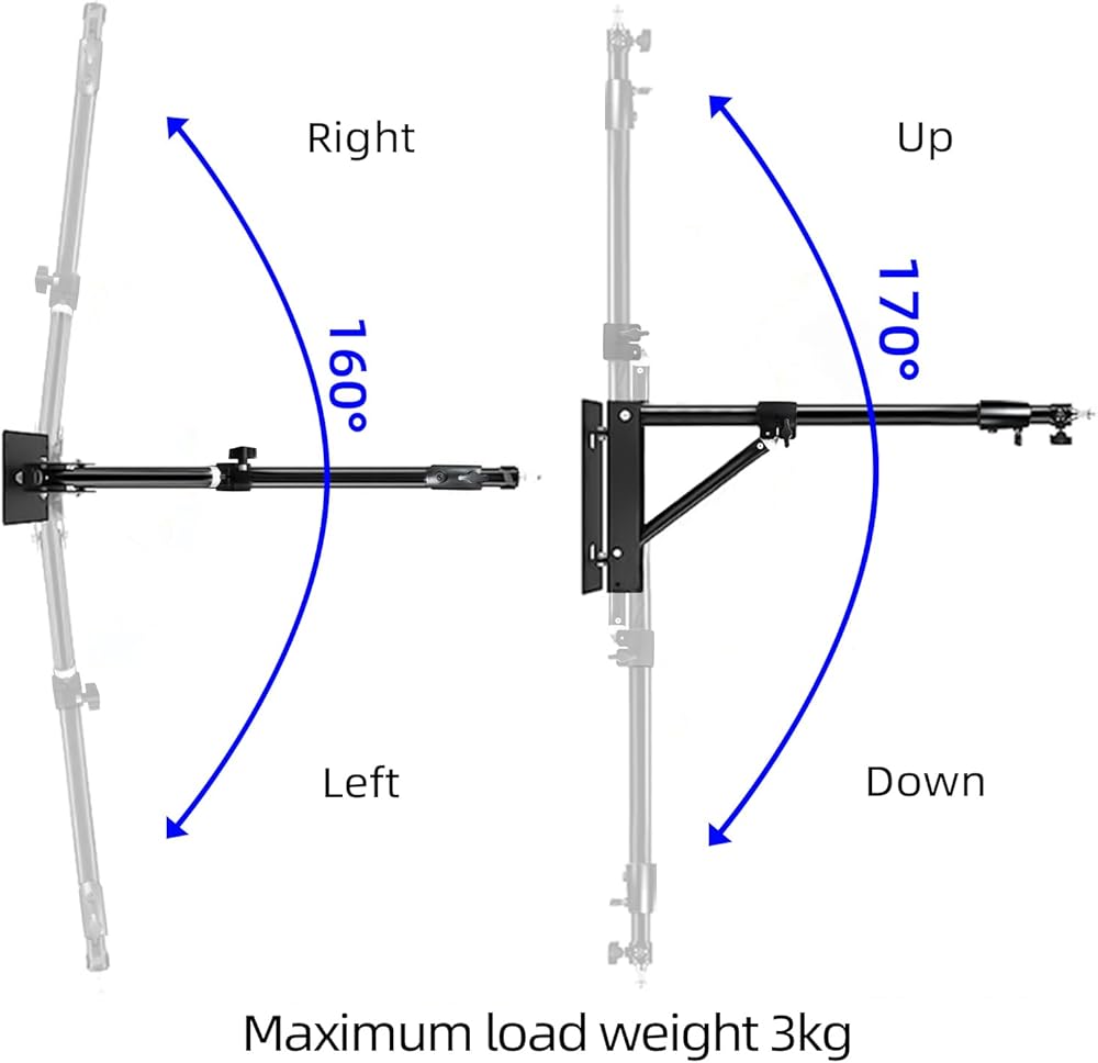 • 【ذراع تثبيت على الحائط عالي التحمل】 ذراع التثبيت على الحائط مصنوع من سبائك الألومنيوم القوية للعمل الشاق. يمكنها حمل وزن يصل إلى 11 رطلاً/5 كجم كحد أقصى. يعتبر حامل ذراع الرافعة هذا مثاليًا لتركيب معدات التصوير الفوتوغرافي على الحائط أو السقف.