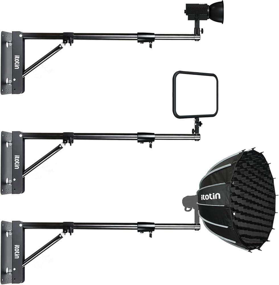 ذراع ذراع مثلث للتثبيت على الحائط، حامل ضوء على الحائط على شكل حلقة لصندوق الضوء، ضوء أحادي، عاكس مظلة، فلاش ستروب، الطول 30.7 بوصة - 53.2 بوصة