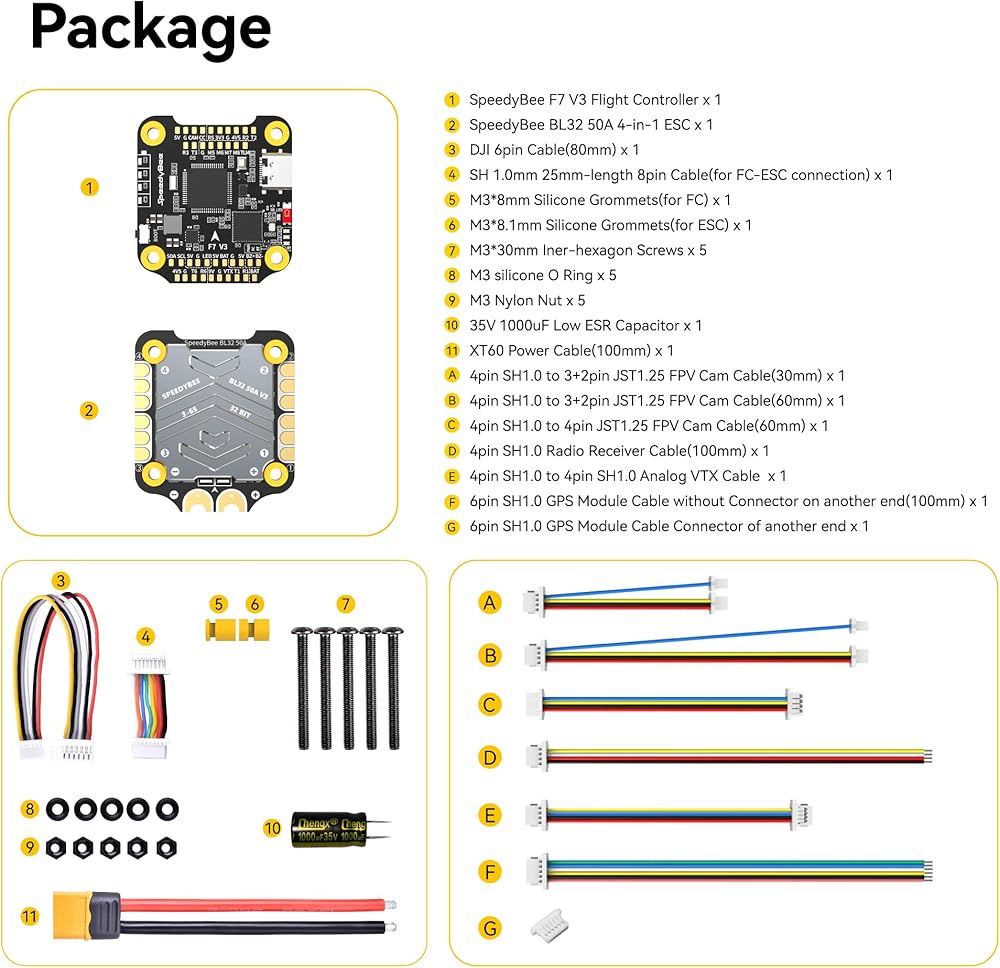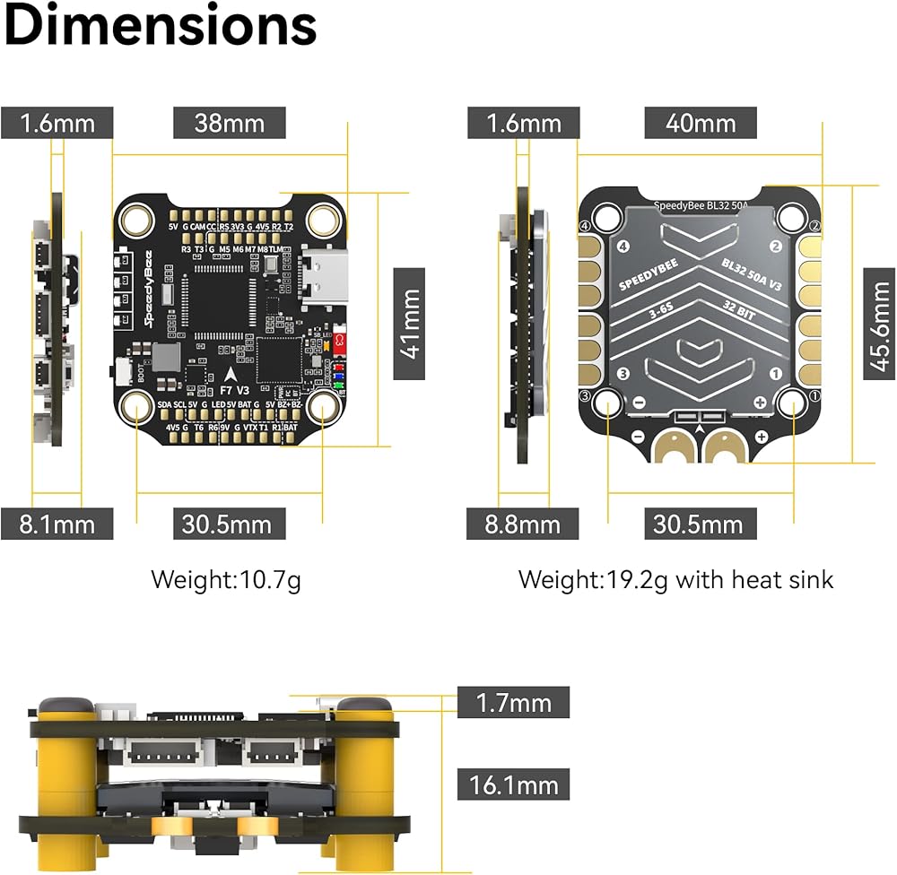 مجموعة وحدة التحكم في الطيران SpeedyBee V3 F7: 30x30 Drone FC Stack مع 4in1 50A ESC BL32، تكوين Betaflight اللاسلكي، صندوق أسود، مقابس خالية من اللحام، WiFi، بلوتوث لـ 3-6S 4 "5" FPV Drone Cinelifter
