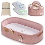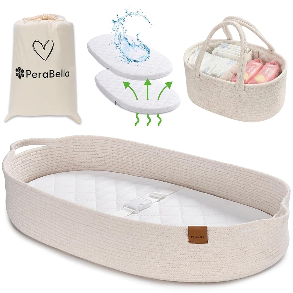 وسادة إسفنجية سميكة مع غطاء مقاوم للماء: تحتوي سلة تغيير الحفاضات الخاصة بنا للأطفال على وسادة إسفنجية سميكة مع غطاء مقاوم للماء يمكن غسله في الغسالة وحزام أمان قابل للتعديل. هذا المنتج هو بديل لسلة موسى للأطفال مع الحامل