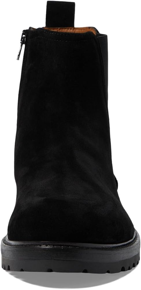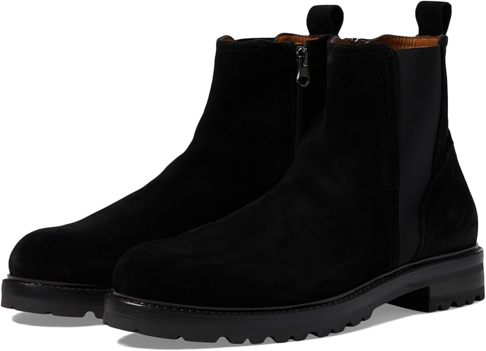Slay the trendsetter game effortlessly by opting for the comfy La Canadienne Lev Chelsea Boots. These round toe booties feature suede upper construction with leather lining and removable insole. The zippered side closure and back pull tabs are designed for additional ease. Stacked heels. Synthetic outsole.