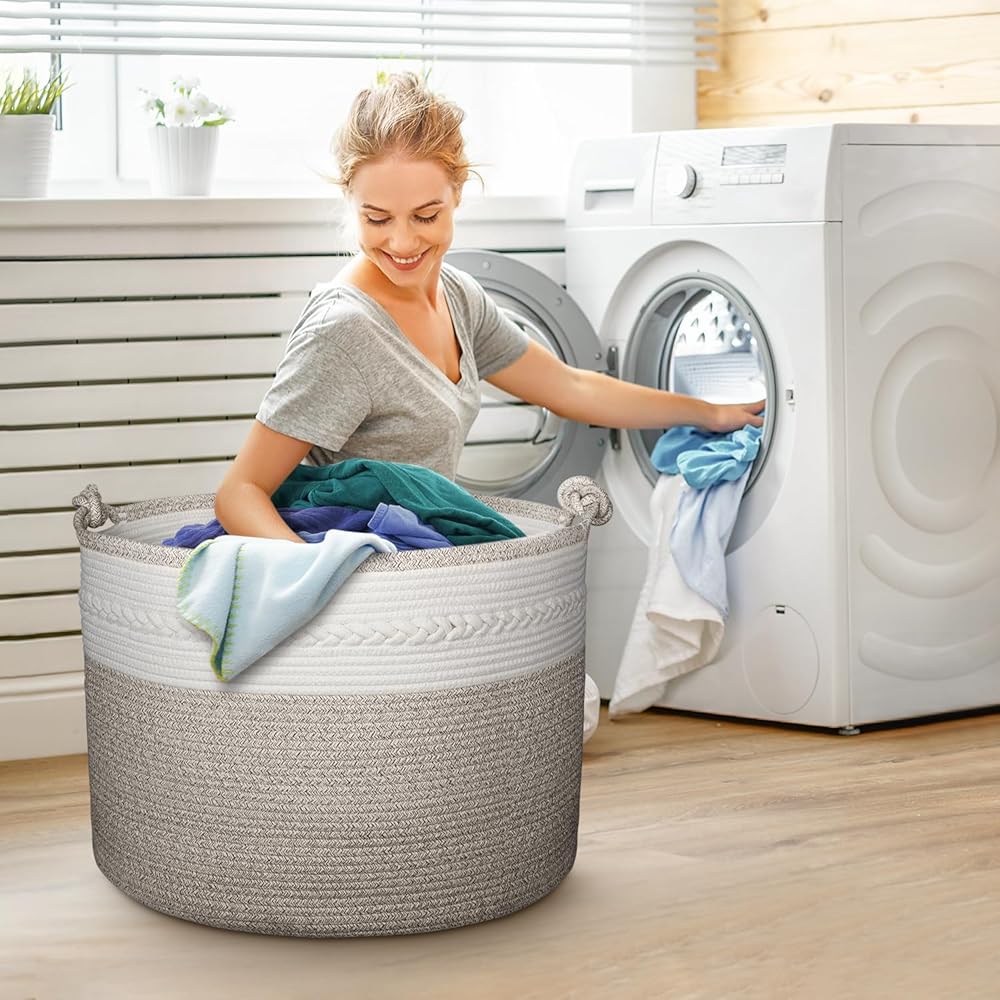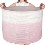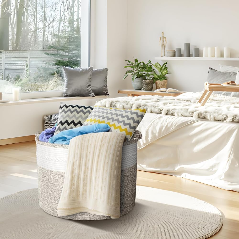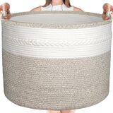 🎁【سلة منسوجة متينة وقابلة للطي】مع مقابض معقودة مدمجة، يمكنك حمل العديد من العناصر دون أن تنكسر! يمكن طي سلة البطانية عند عدم استخدامها. إنه ناعم ولكنه متين للاستخدام طويل الأمد. هدية رائعة للعائلة لاستخدامها في التخزين، وهدية لطيفة لحديثي الولادة.