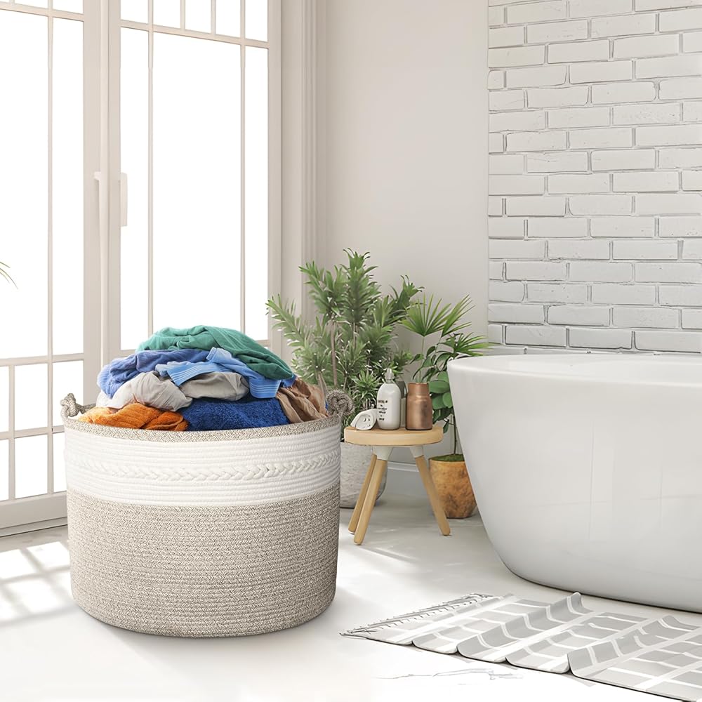 🎁【سلة تخزين أنيقة】تتميز بألوان محايدة وتصميم حياكة ملتوية، ويمكن أن تكون سلة الحبال القطنية الواسعة ديكورًا منزليًا لغرفة المعيشة وغرفة النوم وغرفة الأطفال وغرفة الغسيل. يرجى إضافته إلى عربة التسوق الخاصة بك في حالة تفويتها!