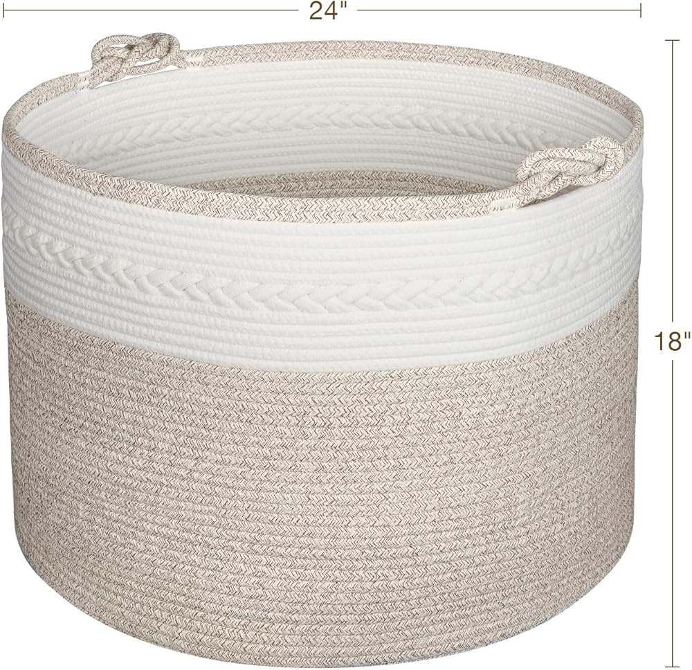 🎁【سلة ضخمة ومتعددة الاستخدامات】سلة تخزين كبيرة الحجم XXXXXL (24 بوصة × 24 بوصة × 18 بوصة) للملابس والبطانيات والوسائد والمناشف والألحفة والكتب وسجادات اليوجا وألعاب الأطفال. يمكن أيضًا أن تكون سلة غسيل للأطفال ملابس قذرة لمدة أسبوع على الأقل.