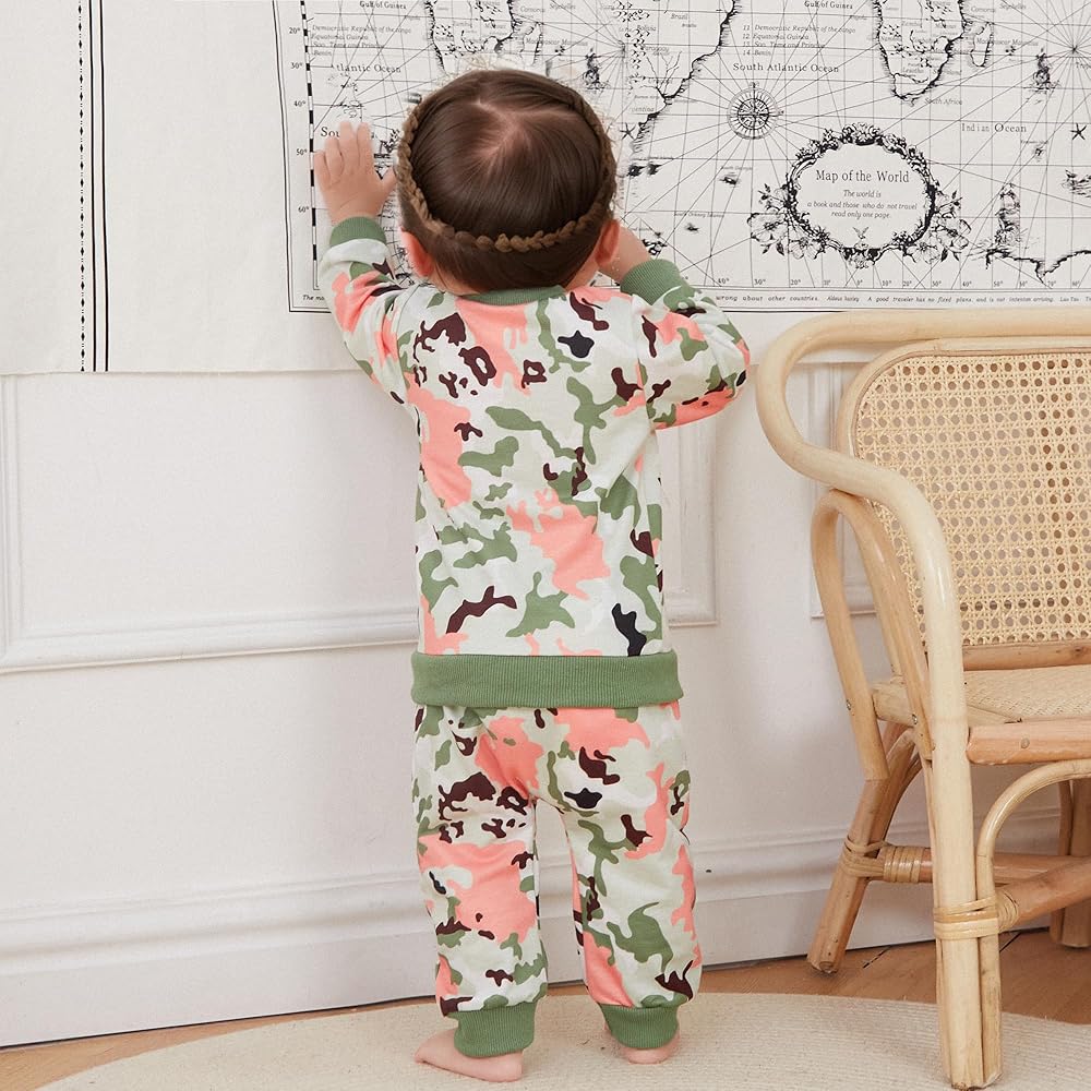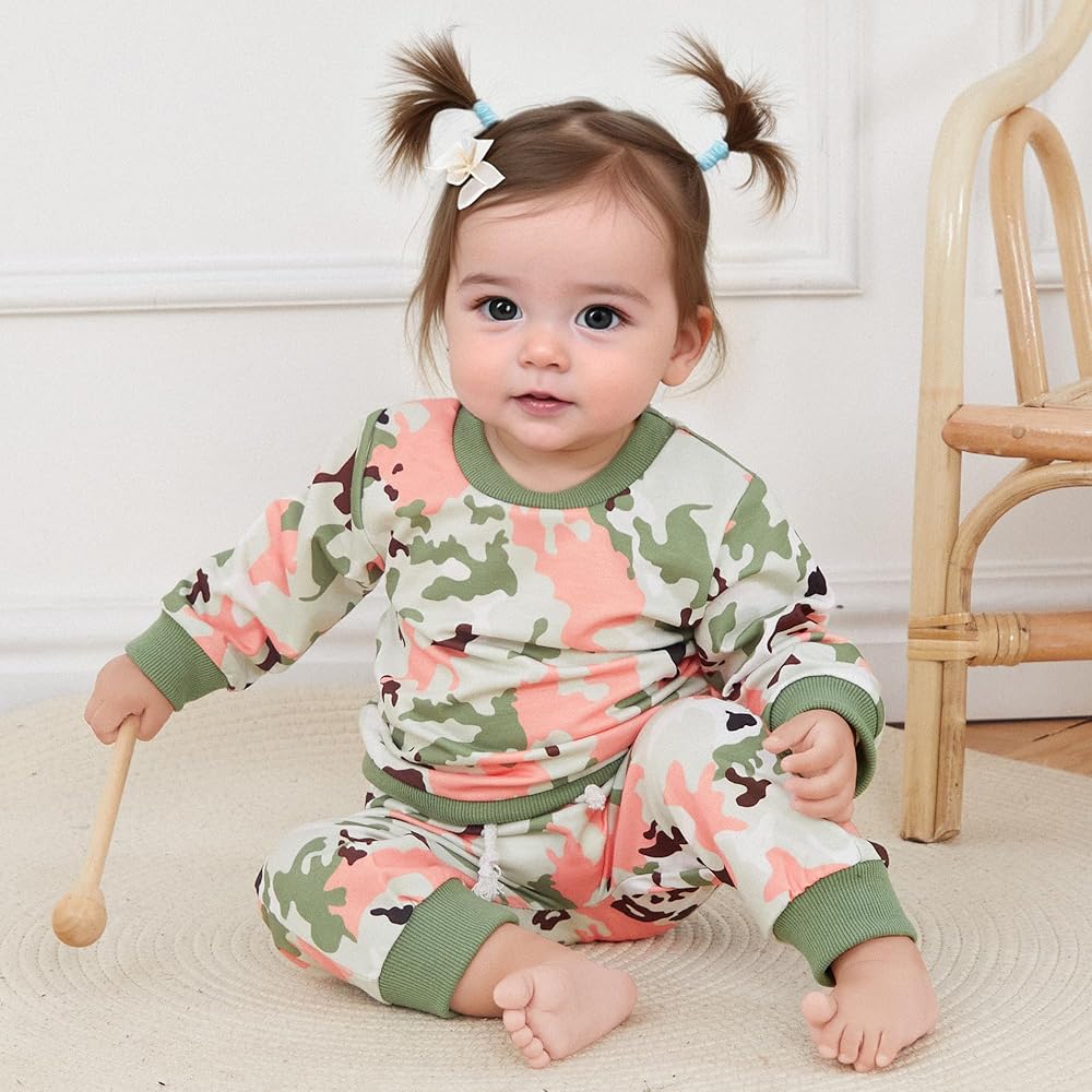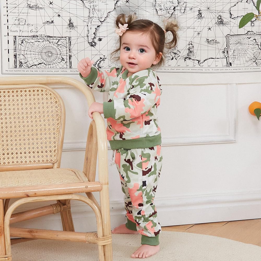 ملابس Kupretty Baby Girl لخريف وشتاء ملابس الأطفال الصغار مع حروف جرافيك وسويت شيرت مموه للركض (أخضر وردي، 3-6 أشهر)