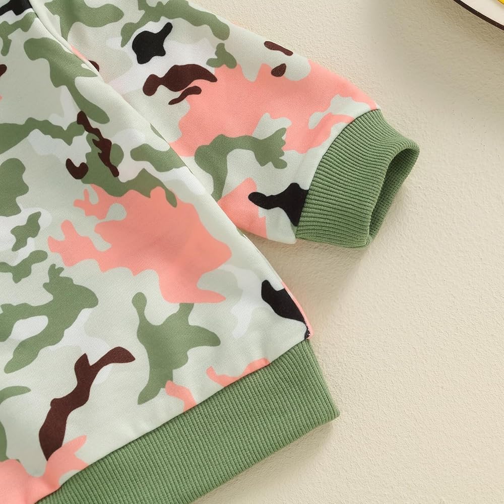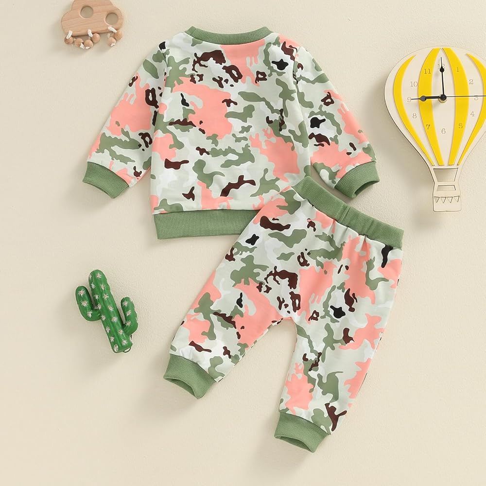 Kupretty Baby Girl Fall Winter Clothes Toddler Outfit Letters Graphic Crewneck Sweatshirts Camouflage Joggers Pants Set