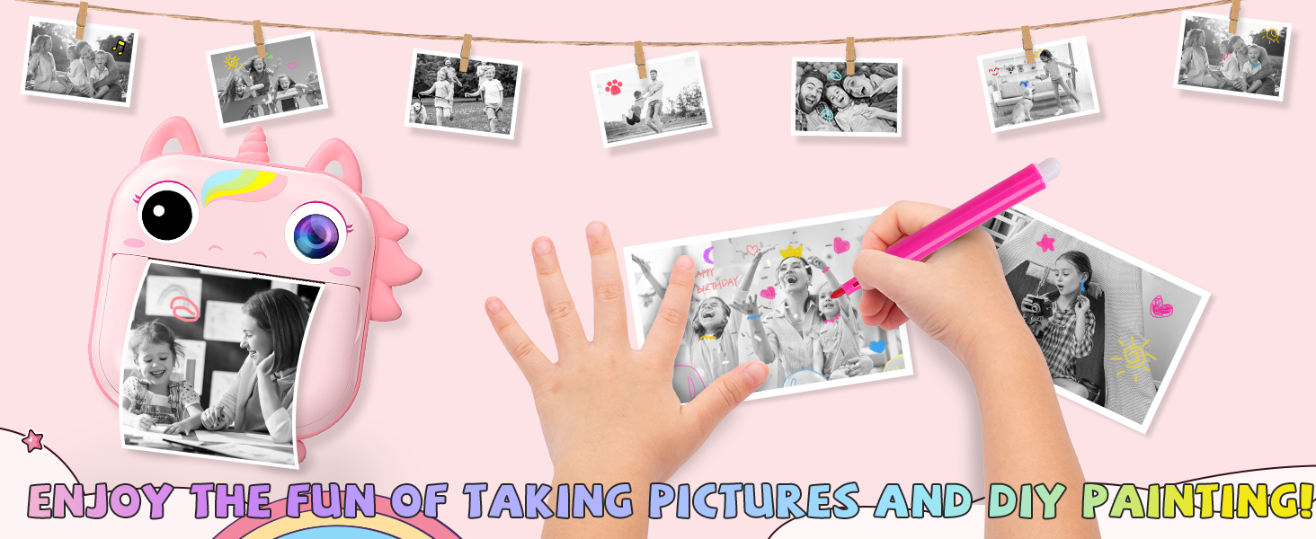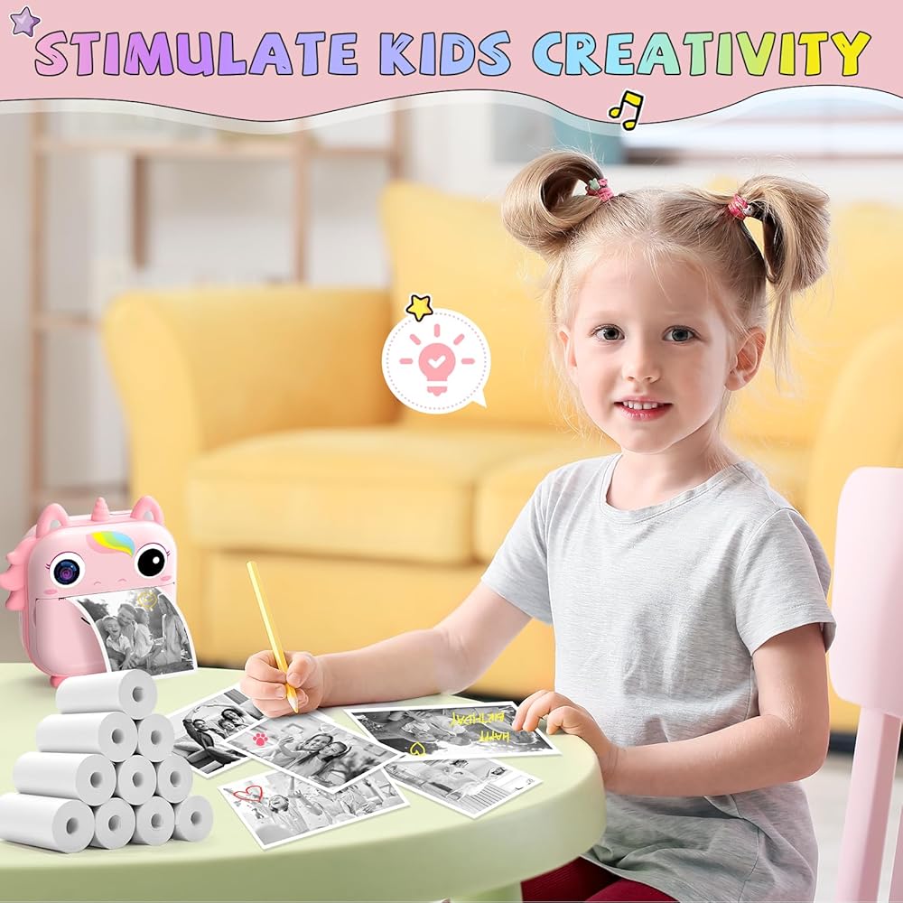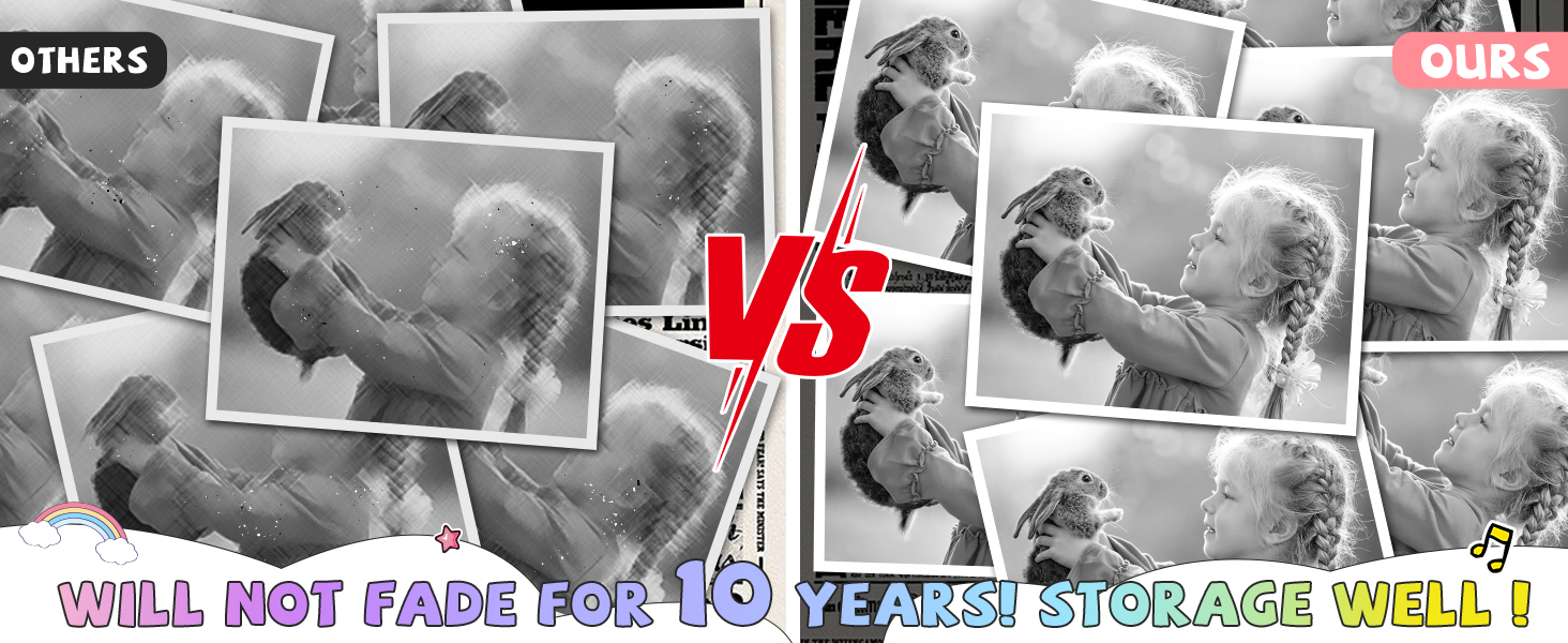 طباعة عالية الدقة: مع الكاميرا الرقمية للأطفال مع تأثير طباعة عالي الوضوح، فإن ورقنا الحراري يحاكي ألوان الأشياء الحقيقية، مما يثير اهتمامهم بالكتابة على الجدران أكثر!