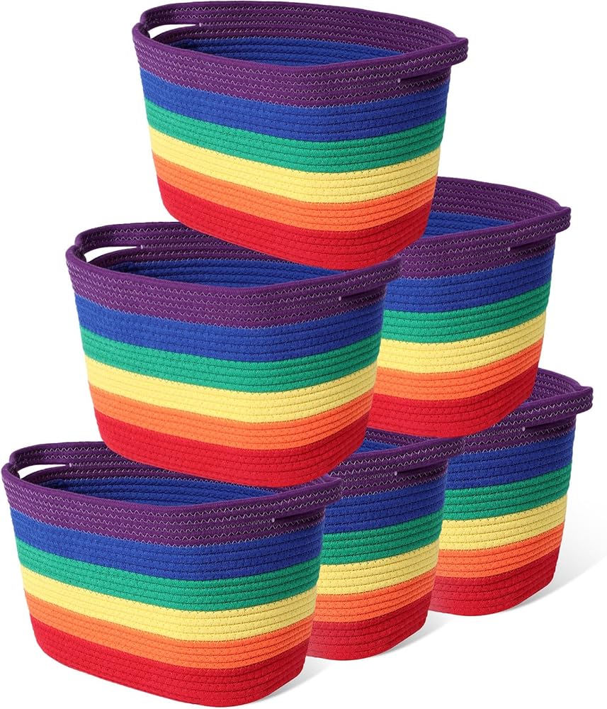 6 عبوات من سلال الحبال المنسوجة للتخزين، سلال تخزين من الحبال القطنية للبطانيات، سلة منسوجة للمجلات، ألعاب الأطفال، صناديق تخزين الحضانة لتخزين الفصول الدراسية، غرفة المعيشة، مقاس 15 × 9 (قوس قزح)