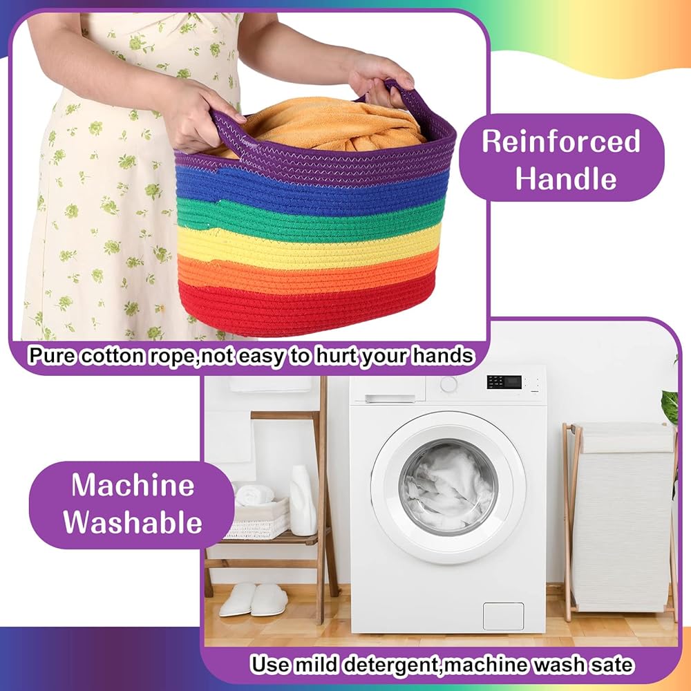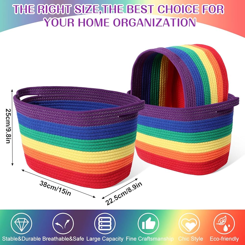 • Ideal Gift Idea: the set of rainbow rope baskets are practical as a gift, elegant and rustic woven nursery baskets are ideal for birthdays, holidays, anniversaries, Christmas, or weddings; These bins are a nice way to stay organized and keep your home looking neat and tidy