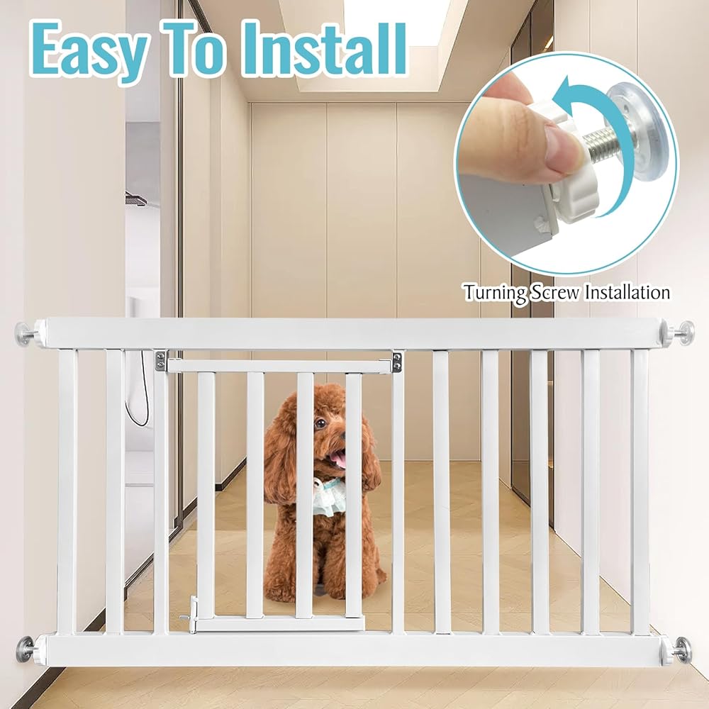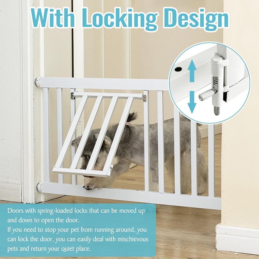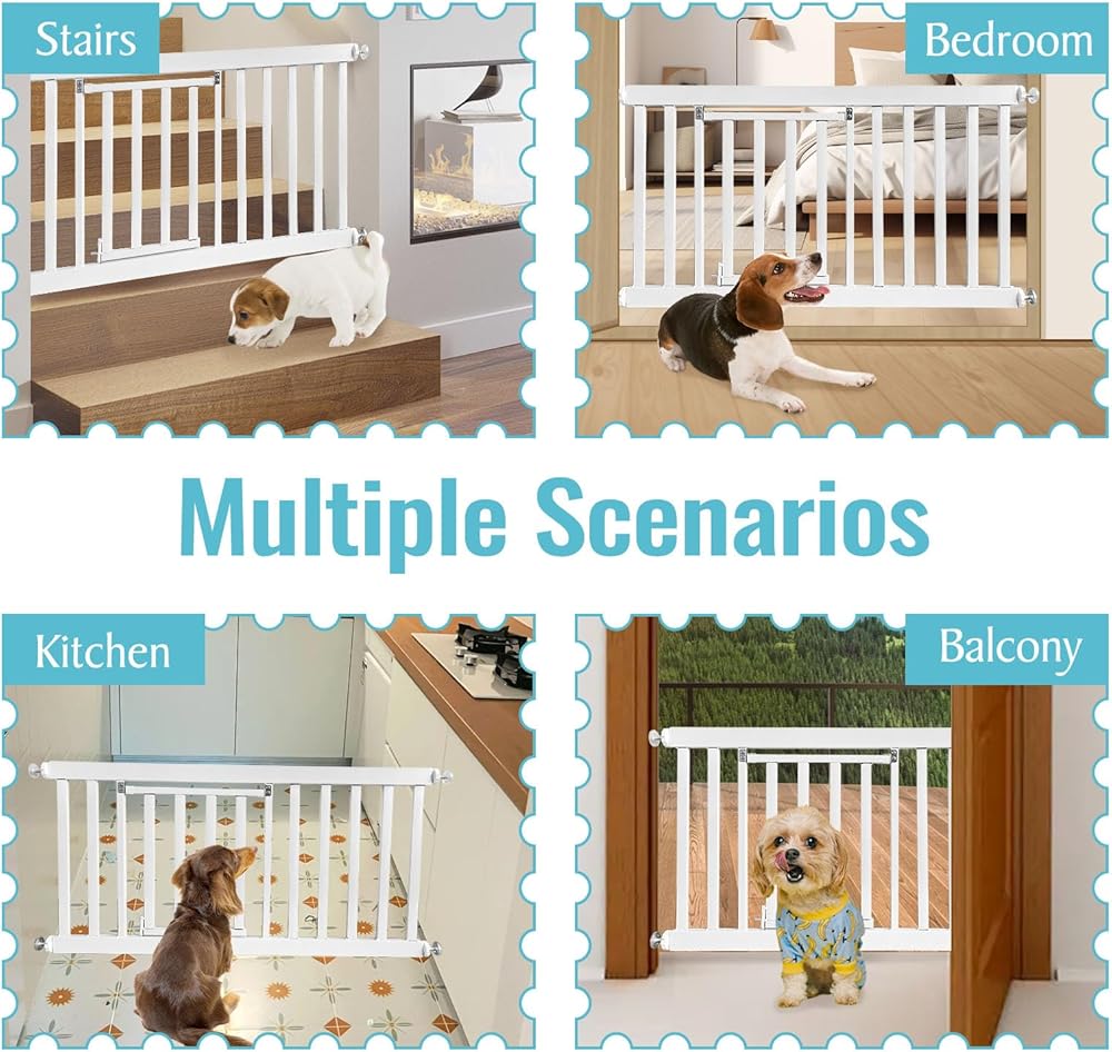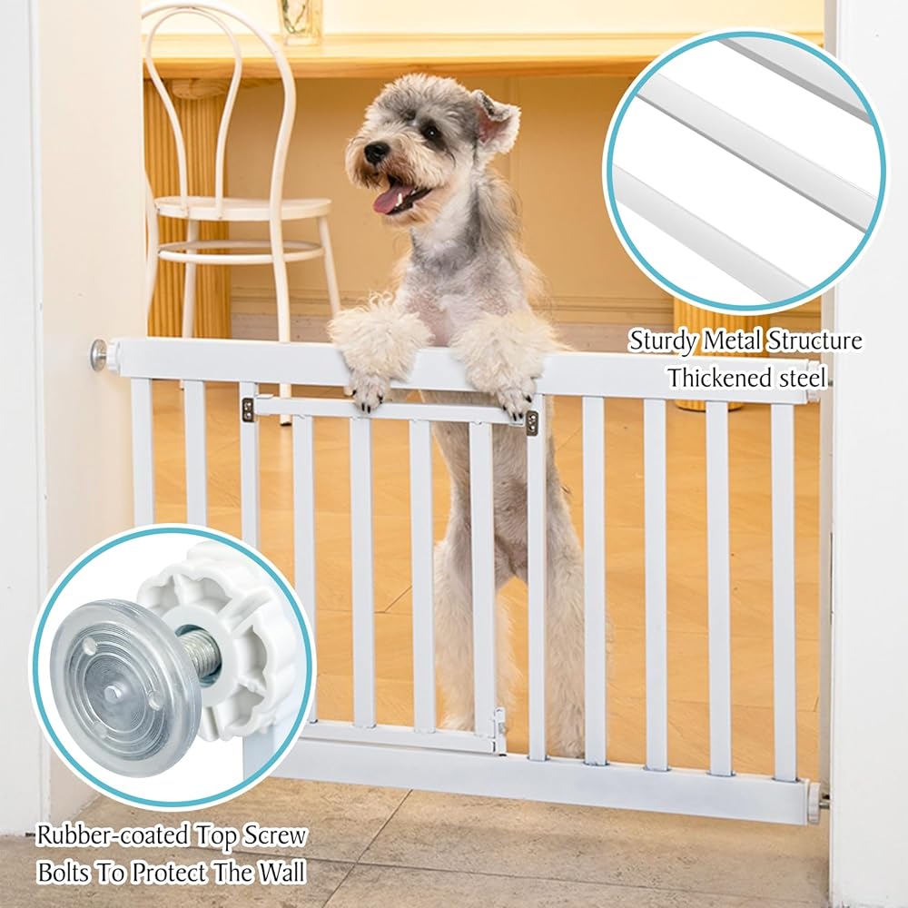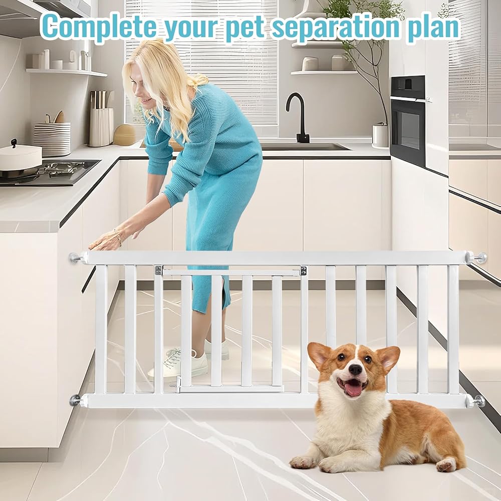 [بوابة كلب قابلة للتعديل] تتسع بوابة الكلب القابلة للتعديل إلى فتحة واسعة من 35.4 إلى 37.7 بوصة. المسافة بين كل حاجز معدني هي 2 بوصة. مع تصميم قفل الباب، تحرك لأعلى ولأسفل لفتحه، يمكن للمالك فتحه بسهولة وقفله. بعض الحيوانات الأليفة! يأتي مع 4 قضبان تثبيت للسماح بتعديل العرض. يرجى القياس بدقة قبل الطلب