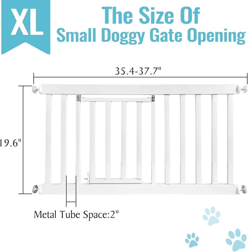بوابة كلب قصيرة، عرض 35.4 بوصة - 37.7 بوصة، بوابة جرو معدنية قابلة للتوسيع مع باب كلب قابل للتعديل يمكن تجاوزه بسهولة عبر بوابة الحيوانات الأليفة، تركيب بسيط، بوابة آمنة للحيوانات الأليفة في الداخل (19.6 بوصة طول)