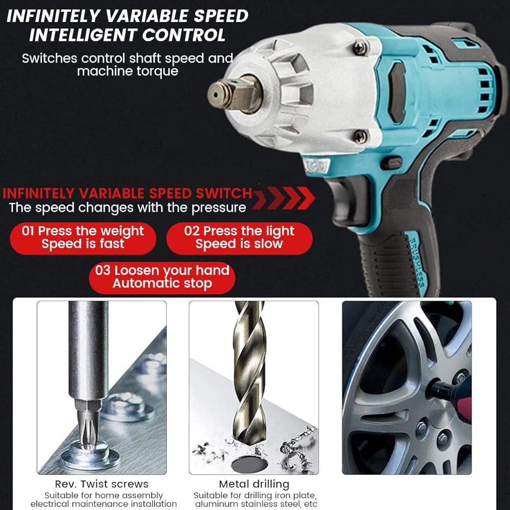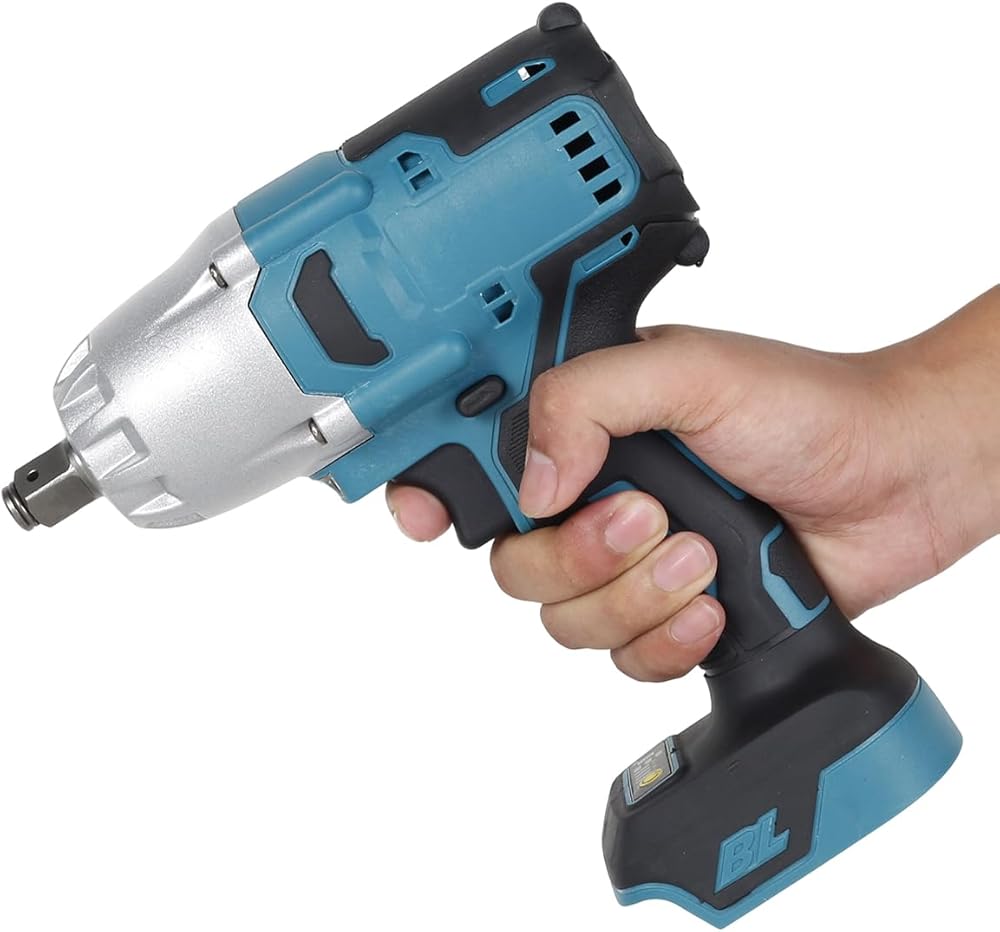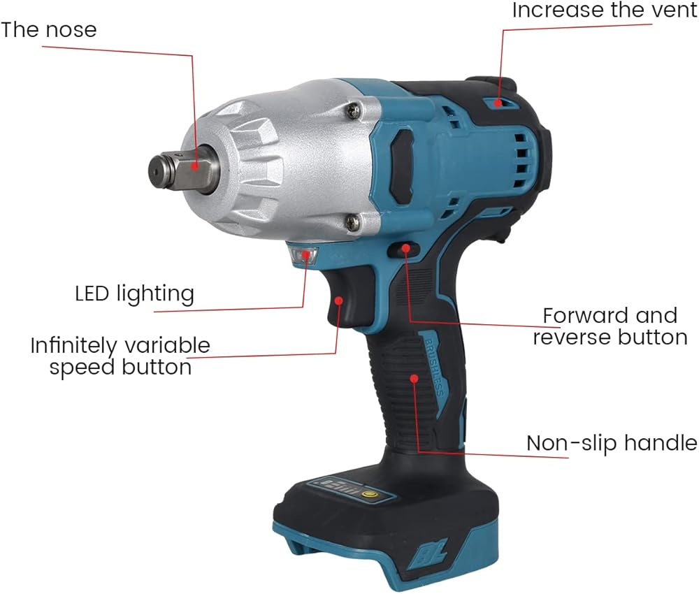 مفتاح ربط كهربائي بدون فرش 1/2 بوصة 18 فولت، مفتاح ربط صدمي لاسلكي 1000 نيوتن متر، محرك تأثير عزم دوران عالي مع ضوء عمل LED، أداة مفتاح ربط قوية لإصلاح إطارات السيارة، خشب معدني