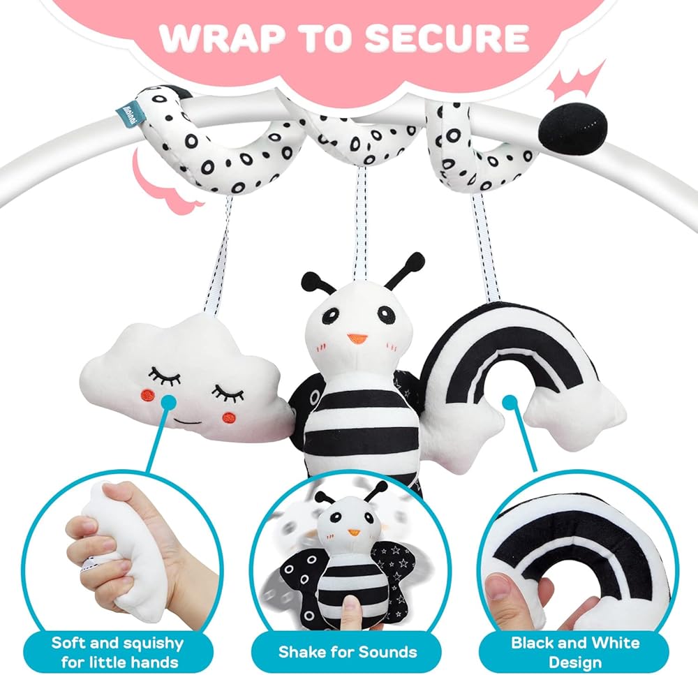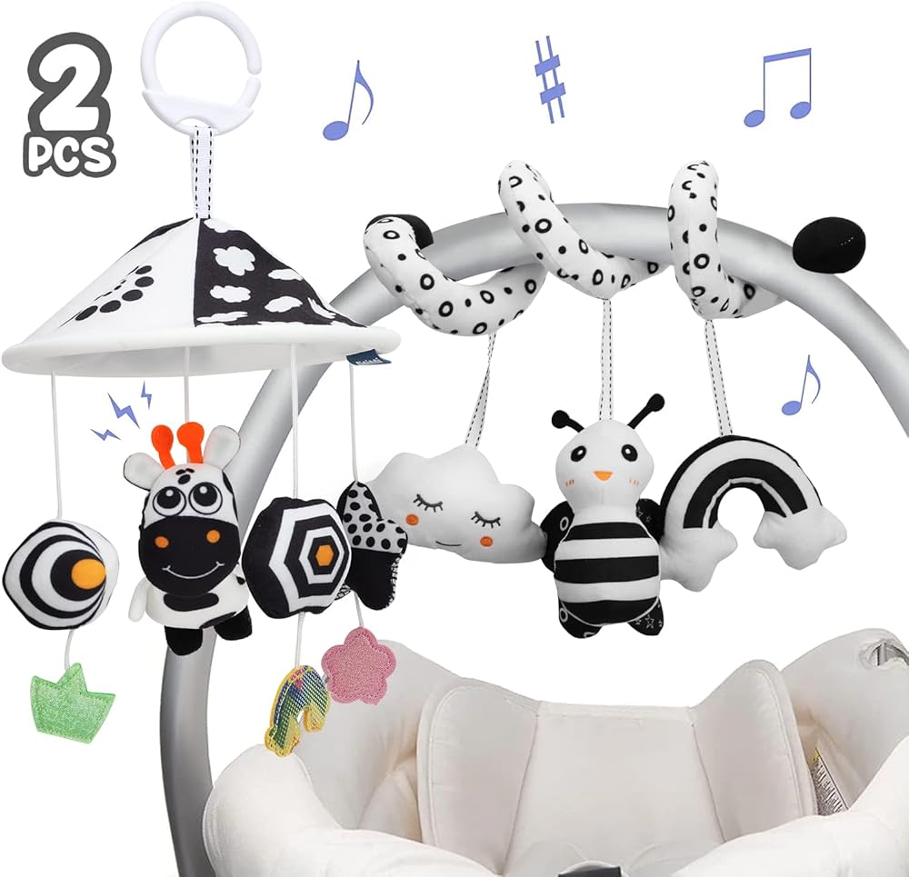 لعبة الحياة 2 حزمة من ألعاب الأطفال المعلقة 0-6 أشهر، ألعاب مقعد السيارة الحلزونية للأطفال من عمر 0-6 أشهر، ألعاب سرير الأطفال المعلقة لحديثي الولادة باللونين الأبيض والأسود، لعبة نشاط عربة الأطفال المعلقة للأطفال، ألعاب مقعد السيارة للرضع