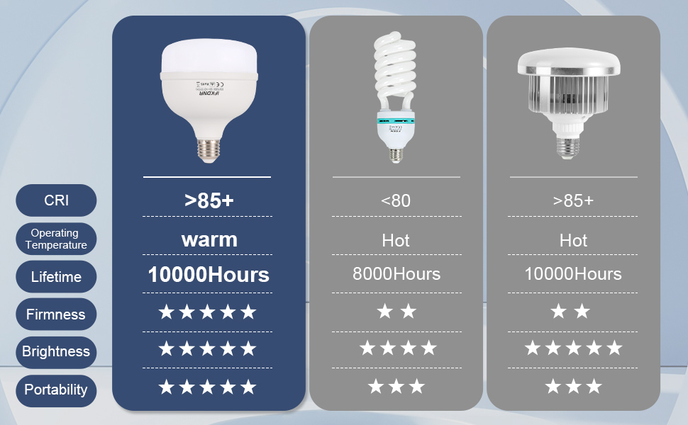 أمان عالي وعمر طويل: تعمل مصابيح IFKDNR softbox على إطالة عمر الخدمة إلى 10000 ساعة مع غطاء معزول للحرارة. على عكس مصابيح الهاليد المعدنية، مصابيح IFKDNR LED بدون زئبق ولن تطلق غازات خطرة.
