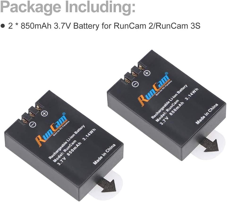 بطارية كاميرا RunCam 850 مللي أمبير 3.7 فولت قابلة للإزالة 6 2 2 4K/Scope Cam Lite/Scope Cam4K، بطارية ليثيوم أيون قابلة لإعادة الشحن (بطاريتان)