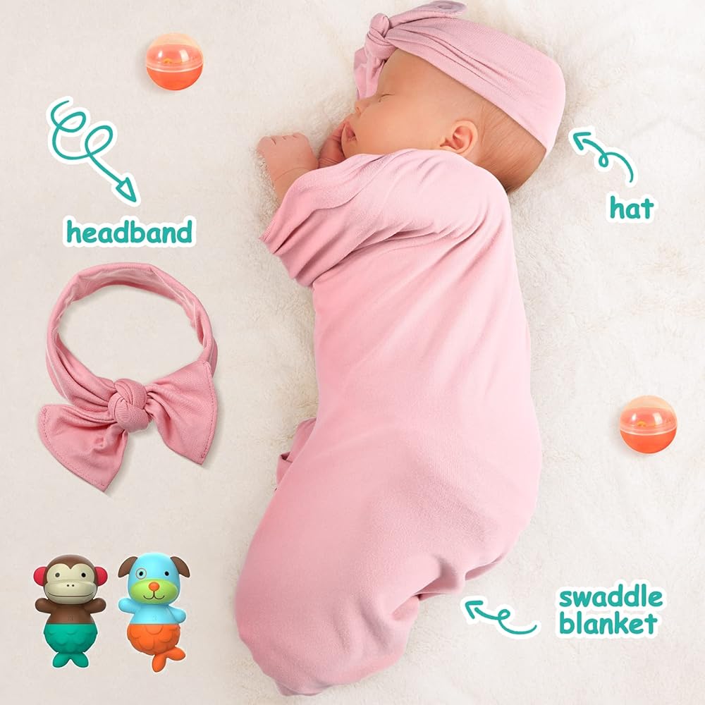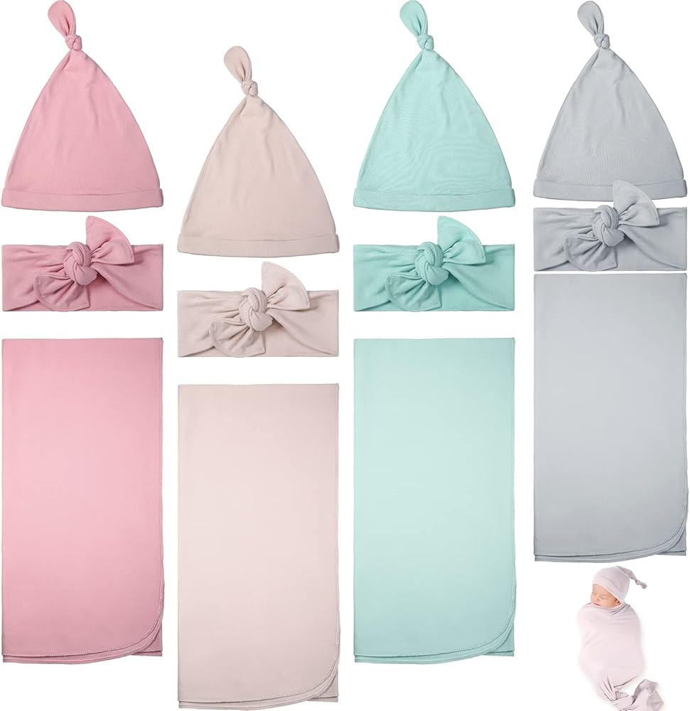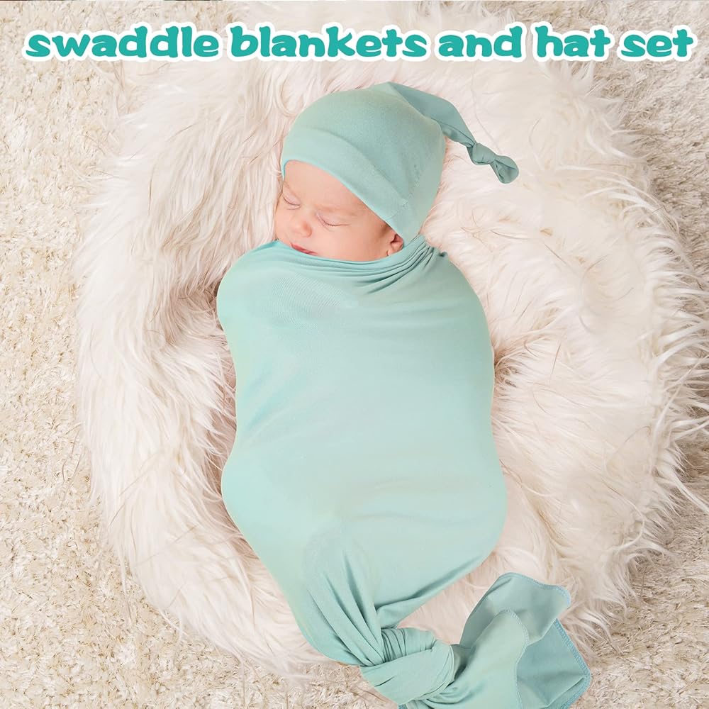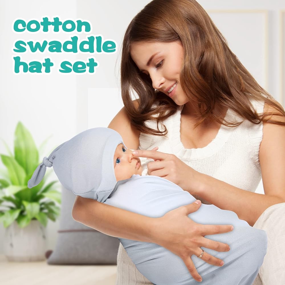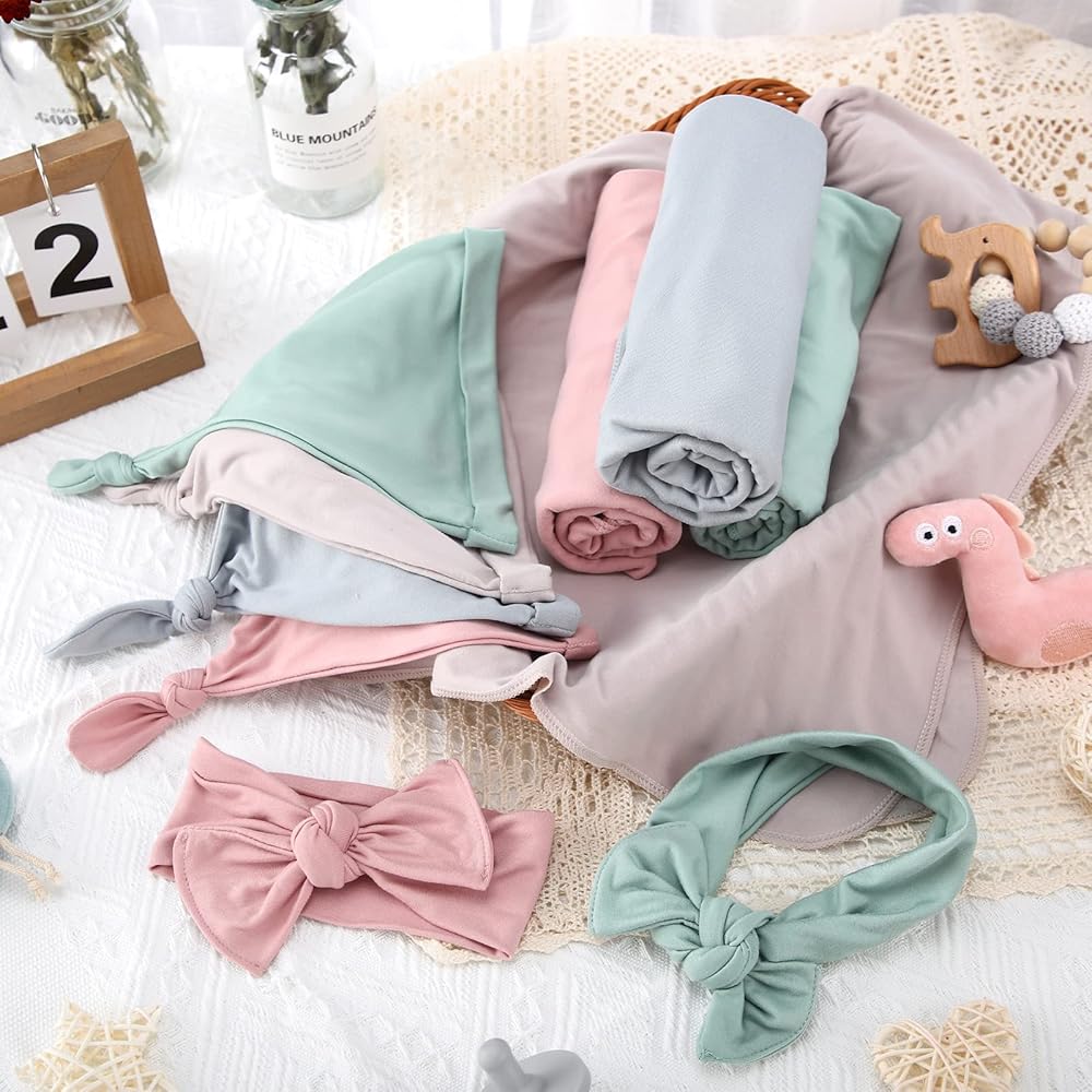These newborn swaddles and hat sets are rich in 4 colors, light green, gray, pink, navy blue, all solid colors can bring you a sense of vigor and comfort, and make your babies cute and adorable.