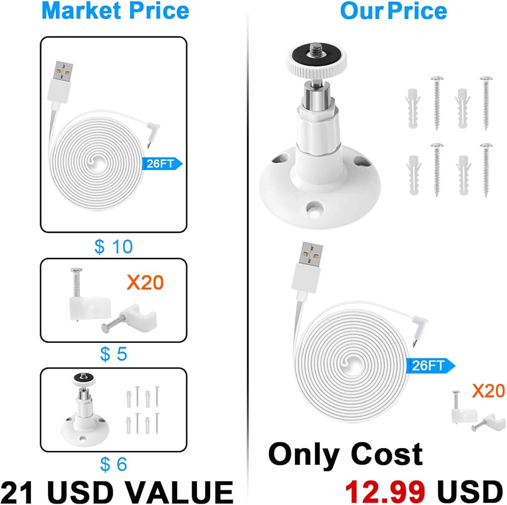 【مجموعة تثبيت كاميرا Wyze Cam Pan/v3】تتضمن 1* حامل كاميرا أمان على الحائط + 1* سلك طاقة بطول 26 قدمًا + 4* براغي + 4* مقابس حائط + 20* مسامير كابل بمشبك سلكي. (ملاحظة: لا تشتمل على كاميرا الأمان)