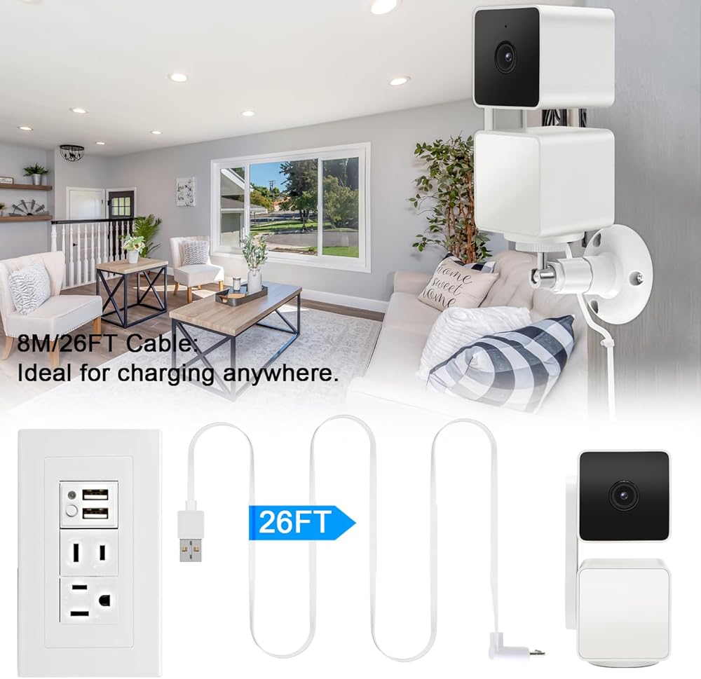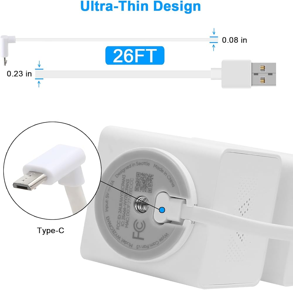 【كابل طويل جدًا ومسطح】يحافظ كابل الطاقة الممتد بطول 26 قدمًا على شكل حرف L على اتصال كاميرا الأمان اللاسلكية الداخلية والخارجية الخاصة بك على مسافة أكبر بكثير ويمنحك المزيد من خيارات التثبيت. يتميز سلك الطاقة المسطح بمرونة عالية، مما يسمح له بالانزلاق بسهولة عبر المداخل وفجوات النوافذ وتحت السجاد وخلف الأثاث، مما يوفر مظهرًا أنيقًا ومنظمًا لأسلاك المنزل أو المكتب.