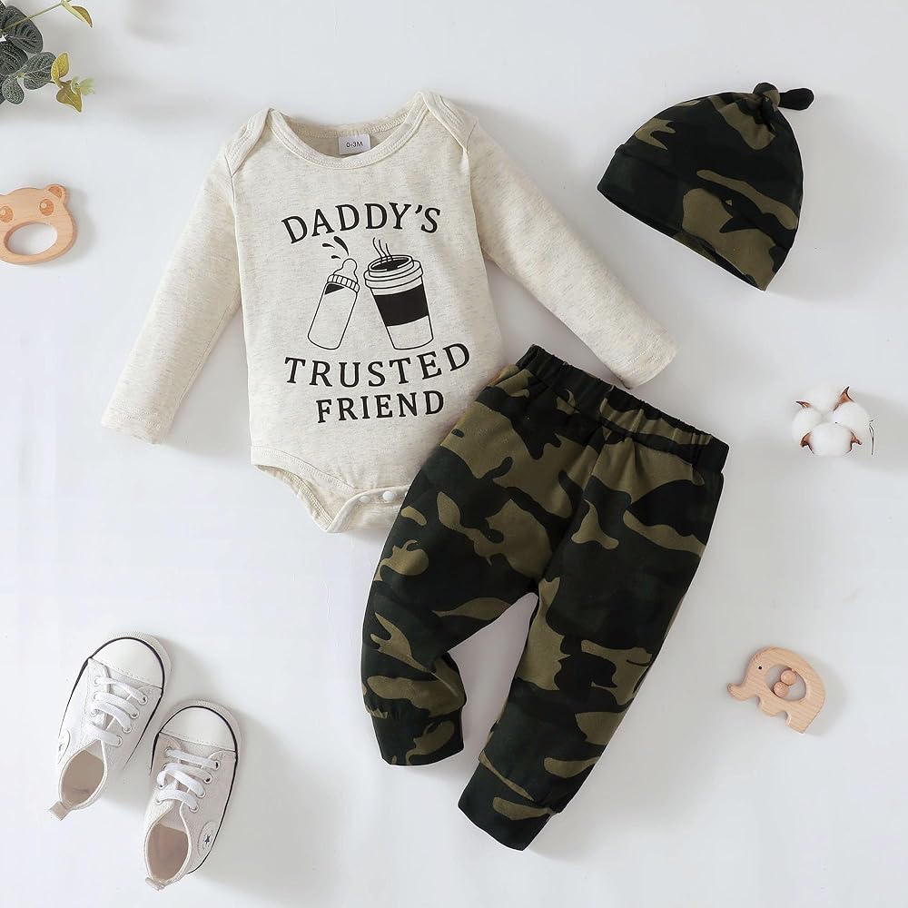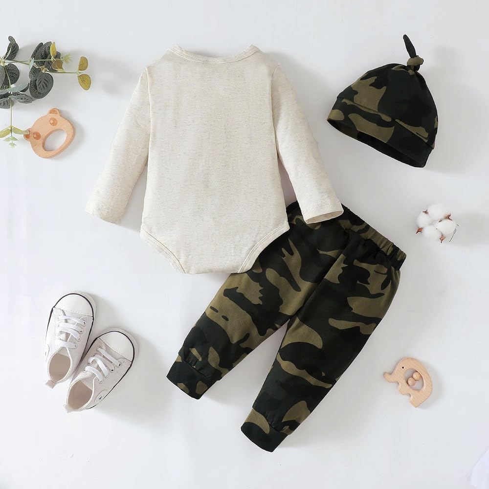[3 قطع ملابس للطفل الصبي] 1 رومبير رائع للأطفال، 1 زوج أنيق من السراويل الطويلة، وقبعة مطابقة. يمكن غسله يدويًا وفي الغسالة بلطف.