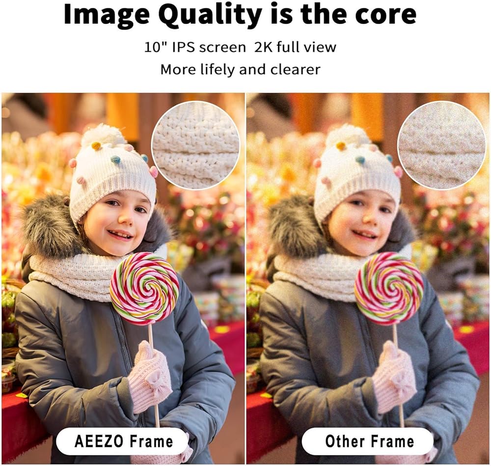 ❤ شارك الصور في أي وقت وفي أي مكان: إطاراتنا مجهزة بواحدة من منصات مشاركة الصور الرائدة، AiMOR. بعد تنزيل التطبيق على جهازك المحمول الذي يعمل بنظام Android أو IOS، يمكنك البدء في مشاركة الصور على أي إطار من إطارات AEEZO. ما عليك سوى الحصول على الرمز من مالك الإطار ويمكنك البدء في مشاركة الصور من أي مكان. يمكنك النقل عبر السحابة بدون رسوم اشتراك أو حدود لحركة البيانات. البقاء على اتصال لم يكن أسهل من أي وقت مضى.