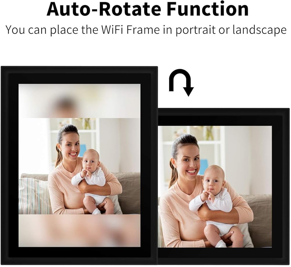 ❤التدوير التلقائي والإعدادات المخصصة: يمكن لإطارات صور Wifi الخاصة بنا تدوير الصور تلقائيًا بناءً على اتجاه الإطار، وسيتم ملء الخلفية بطمس طبيعي. أو، إذا كنت تفضل ذلك، يمكنك ضبط الإطار الخاص بك لاقتصاص الصور تلقائيًا لعرض الإطار الكامل. توفر إطارات الصور الرقمية AEEZO أيضًا مجموعة متنوعة من الإعدادات التي يمكن تخصيصها، بما في ذلك وضع السكون وسطوع الشاشة وتوقيت التقدم التلقائي وتشغيل/إيقاف التسميات التوضيحية وتعديل موضع الصورة والمزيد!