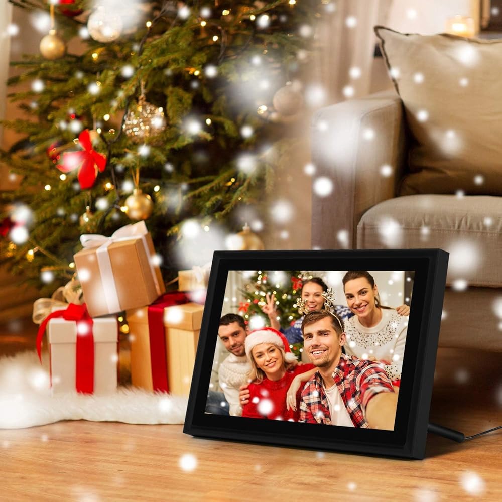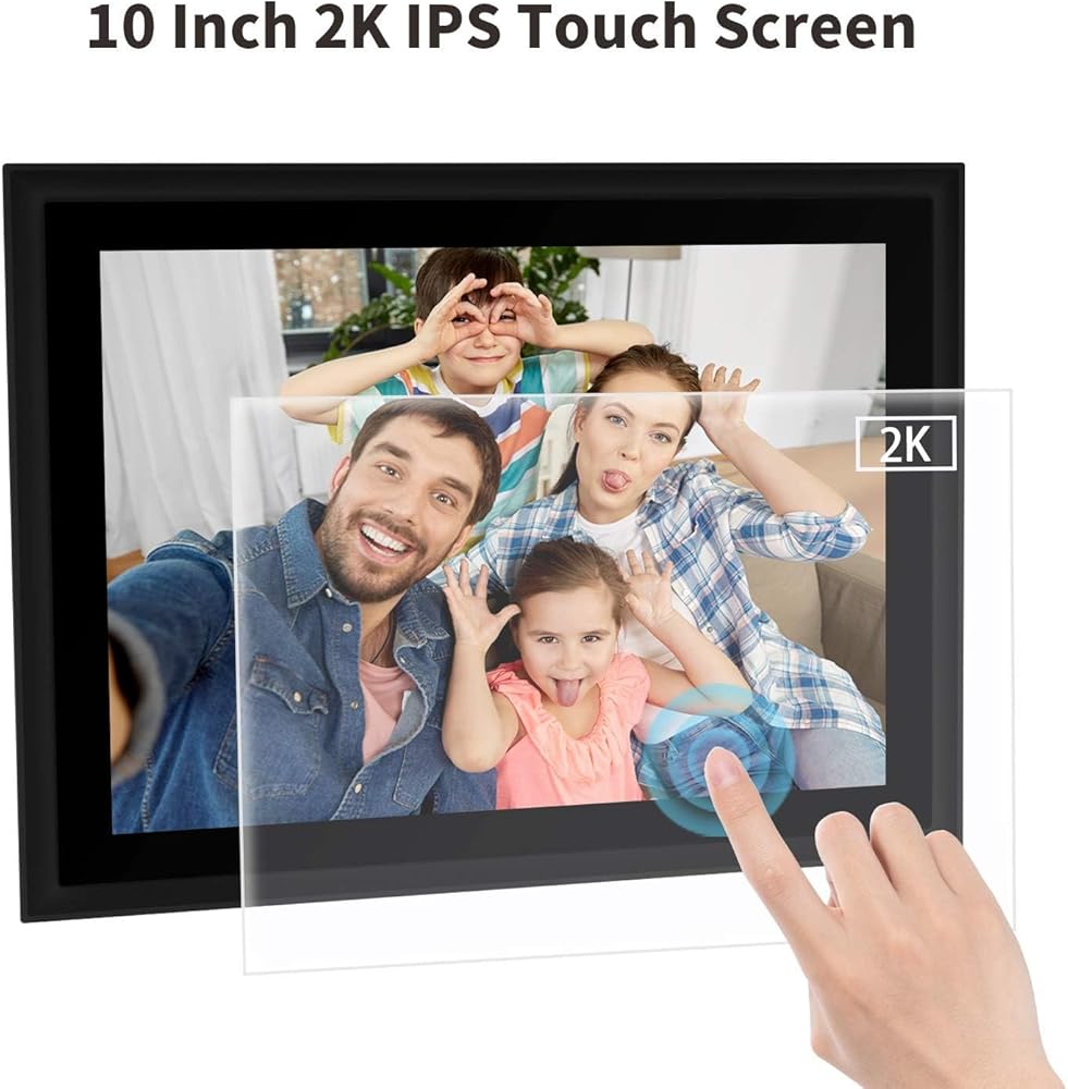 إطار صورة رقمي AEEZO WiFi مقاس 10 بوصات IPS تعمل باللمس FHD 2K إطار صور سحابي ذكي مع مساحة تخزين 16 جيجابايت، إعداد سهل لمشاركة الصور ومقاطع الفيديو، إطار تدوير تلقائي (أسود)