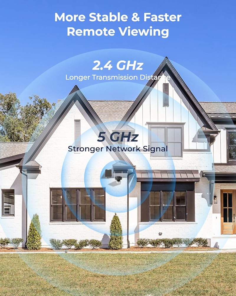كاميرا ريولينك الأمنية الخارجية واي فاي لاسلكية، رؤية واسعة للغاية 180 درجة، رؤية ليلية ملونة 8 ميجابكسل، بطارية تعمل بالطاقة الشمسية، 2.4/5 جيجا هرتز واي فاي، لا حاجة إلى محور، اكتشاف الشخص/المركبة، IP66 مقاوم للماء، Duo 2
