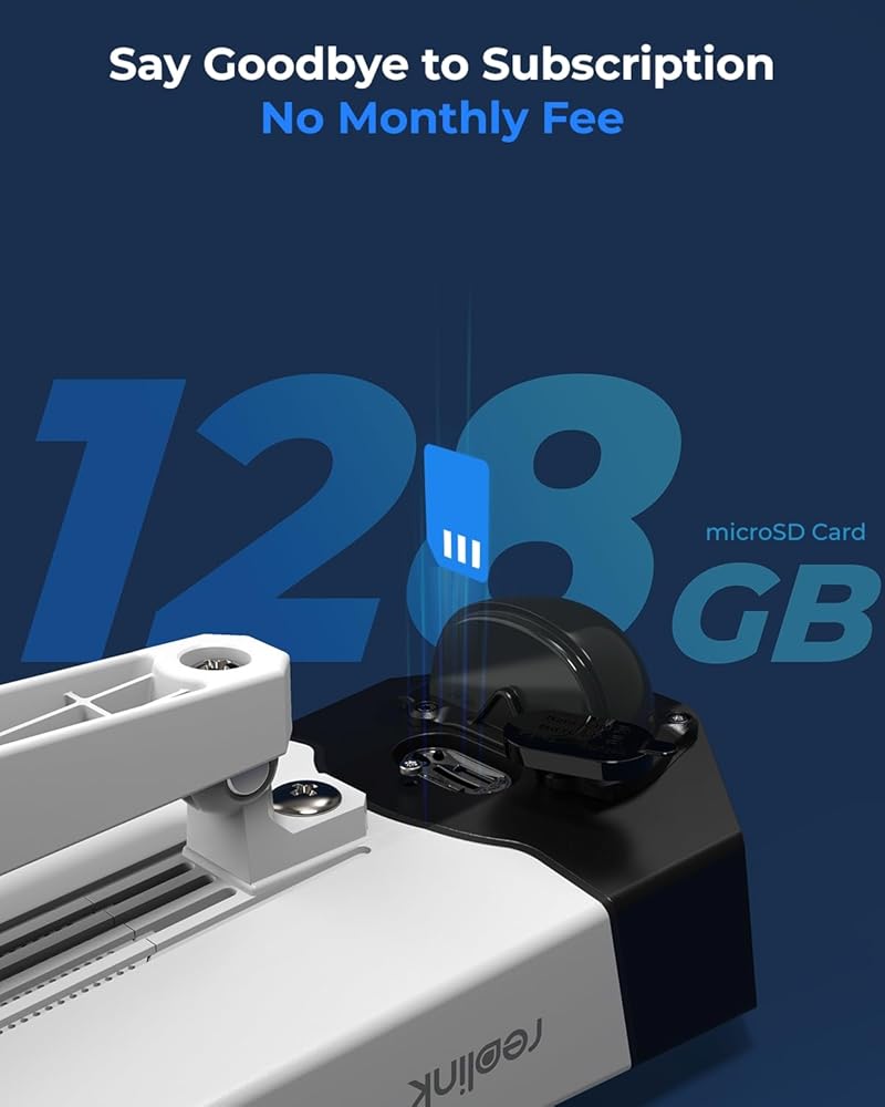 تخزين محلي آمن للتشغيل: احفظ تسجيلات الفيديو بأمان بحد أقصى. مساحة تخزين محلية تبلغ 128 جيجابايت مدعومة بفتحة بطاقة microSD المدمجة (بطاقة الذاكرة غير متضمنة). قم بتشغيل اللحظات المهمة من الكاميرا عبر تطبيق/عميل Reolink في أي وقت وفي أي مكان.