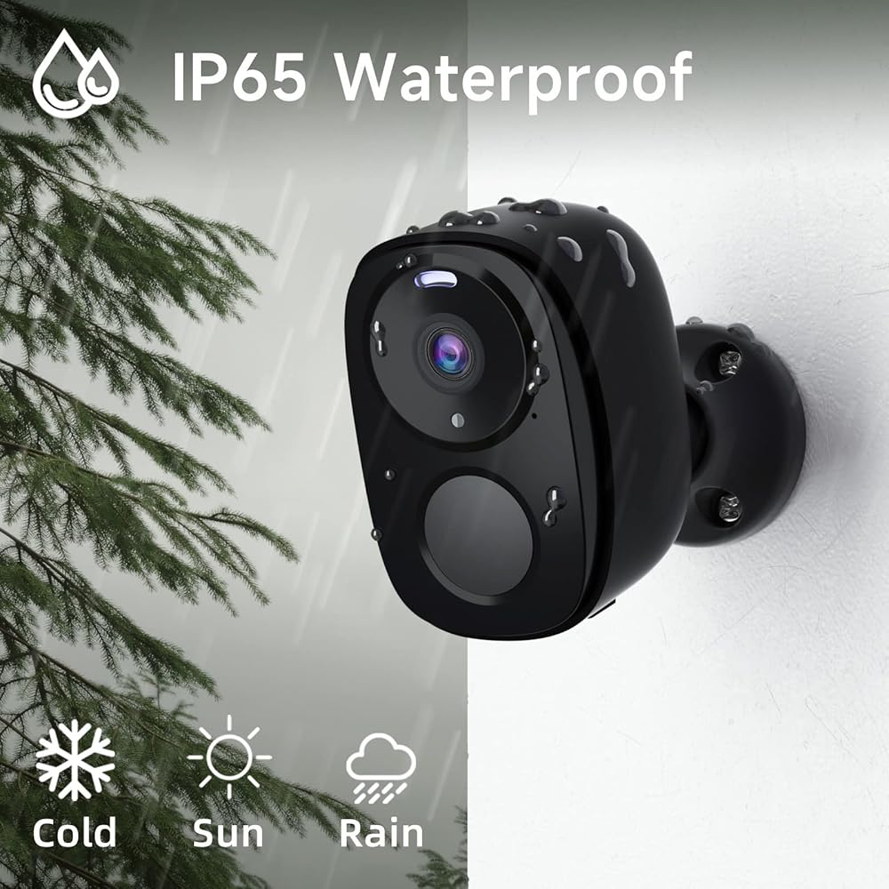 【مقاومة للماء وخالية من الأسلاك بنسبة 100% وقابلة لإعادة الشحن】هذه الكاميرا اللاسلكية الآمنة للاستخدام الخارجي/الداخلي مع بطارية احترافية قابلة لإعادة الشحن وتصميم مضغوط. إنها كاميرا أمان منزلية حقيقية منخفضة استهلاك الطاقة. يمكن للكاميرا المقاومة للماء IP65 أن تعمل في أي طقس. نظرًا لأن كاميرا WIFI لاسلكية تمامًا، فلا حاجة إلى أسلاك طاقة أو كابل شبكة، مما يسمح بالتثبيت في أي مكان تقريبًا باستخدام الدعامة والمسمار المرفقين. يدعم فقط واي فاي 2.4 جيجا هرتز.